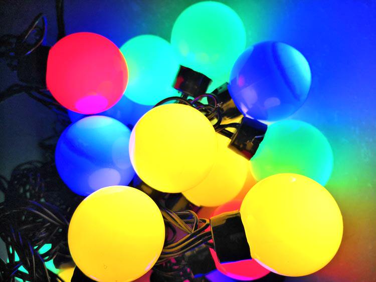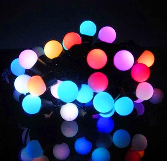 2 см. Светлый диаметр шарика 2 см (веревка из 28 головок лампы) Изменение цвета