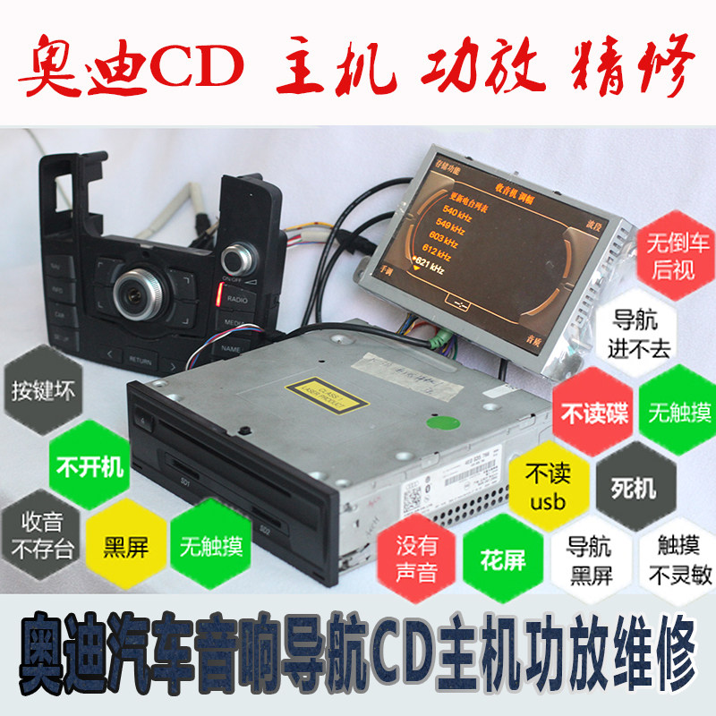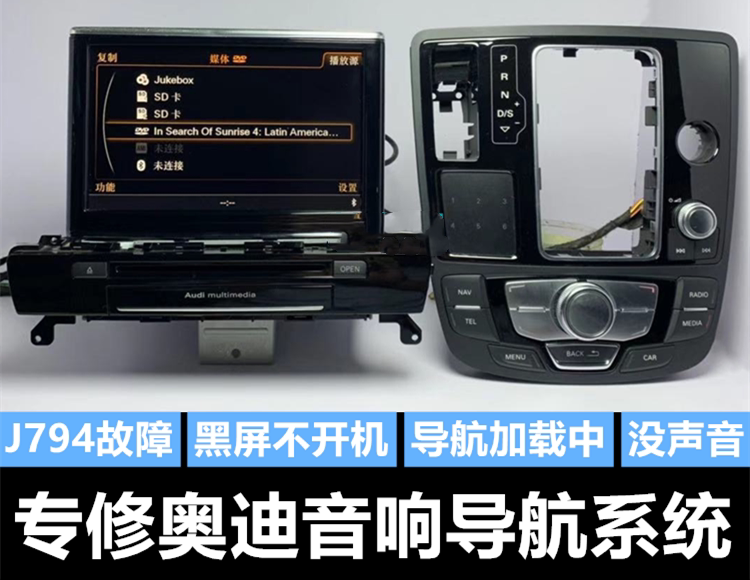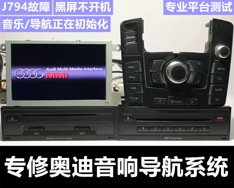 AudiJ794/радио/ /Усилитель мощности/MMI клавиатура/Отображать/Черный экран/без звука/инициализации/без навигации/навигация на DVD не может быть загружена/SD -карта не может быть распознана/не включена в/утечка, а другие электрические сбоиРемонт неисправностей