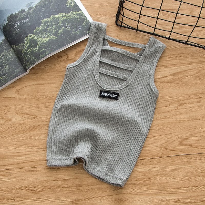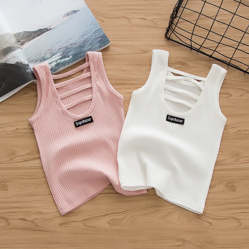 Трикотажная хлопковая летняя белая майка топ для девочек, в западном стиле, для маленькой груди