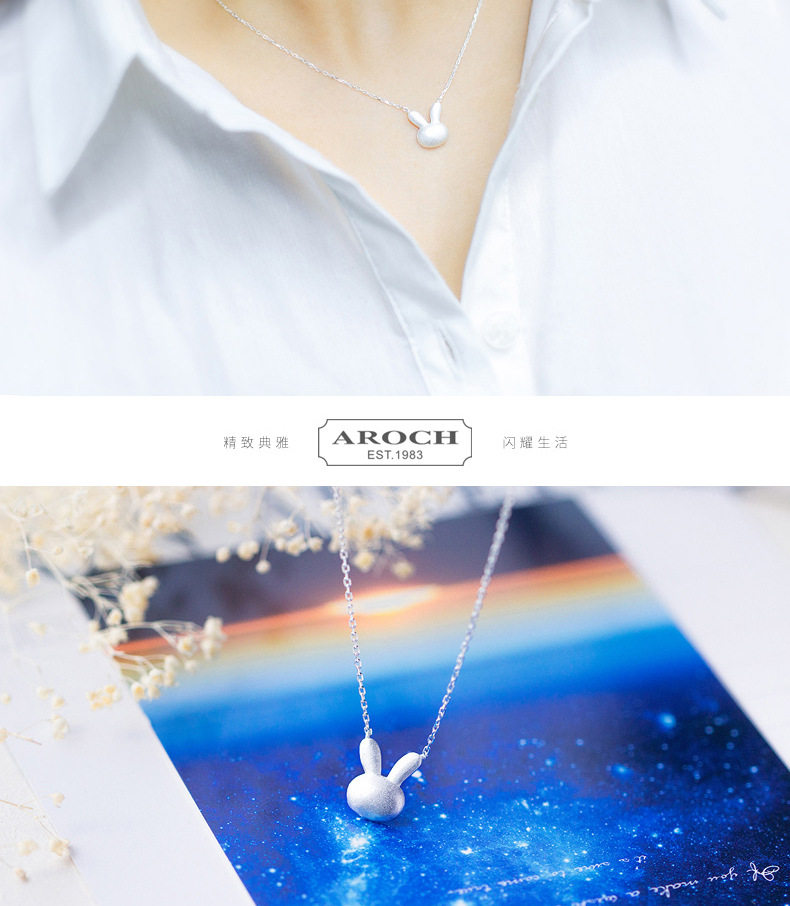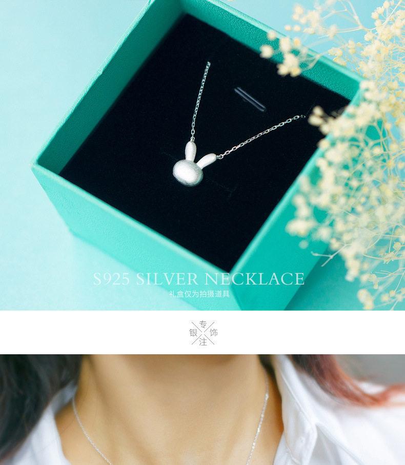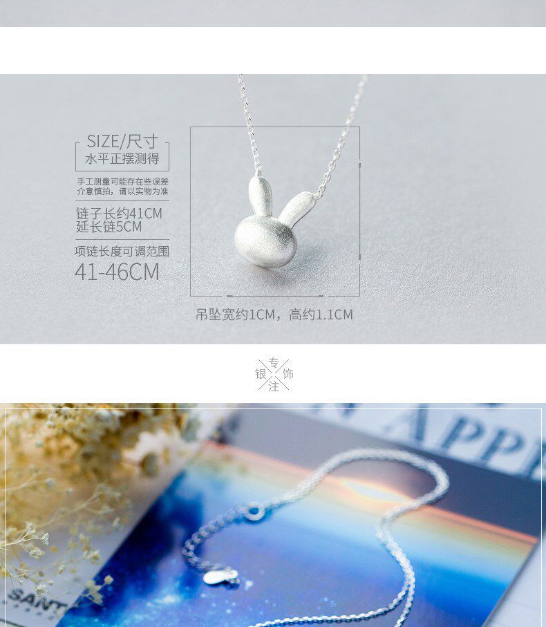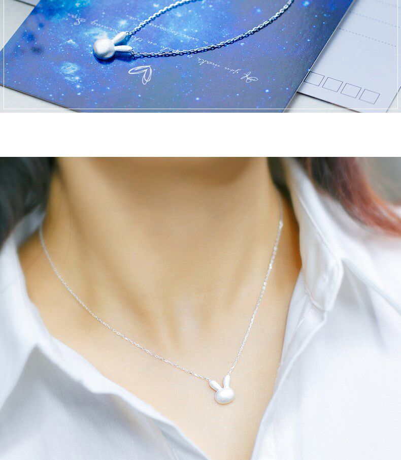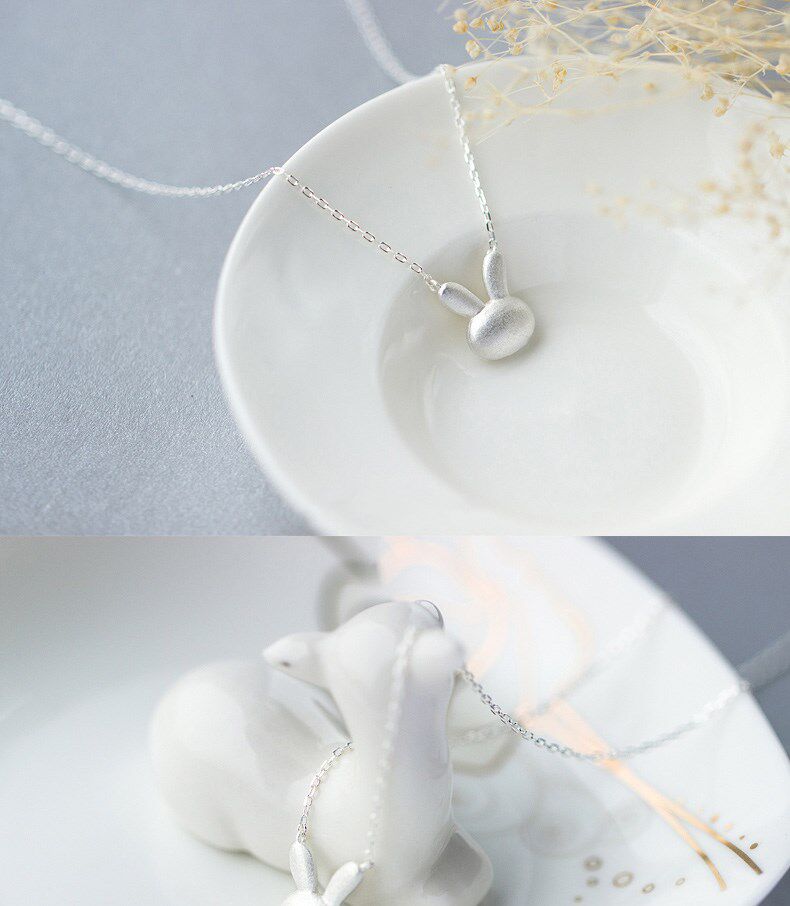 Ожерелье, милая подвеска, матовый милый кролик, короткая цепочка до ключиц, серебро 925 пробы, в корейском стиле