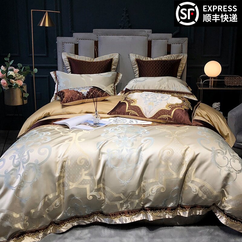 Комплект, хлопковое покрывало, одеяло, роскошный пододеяльник, цвета шампанского, 4 предмета, европейский стиль