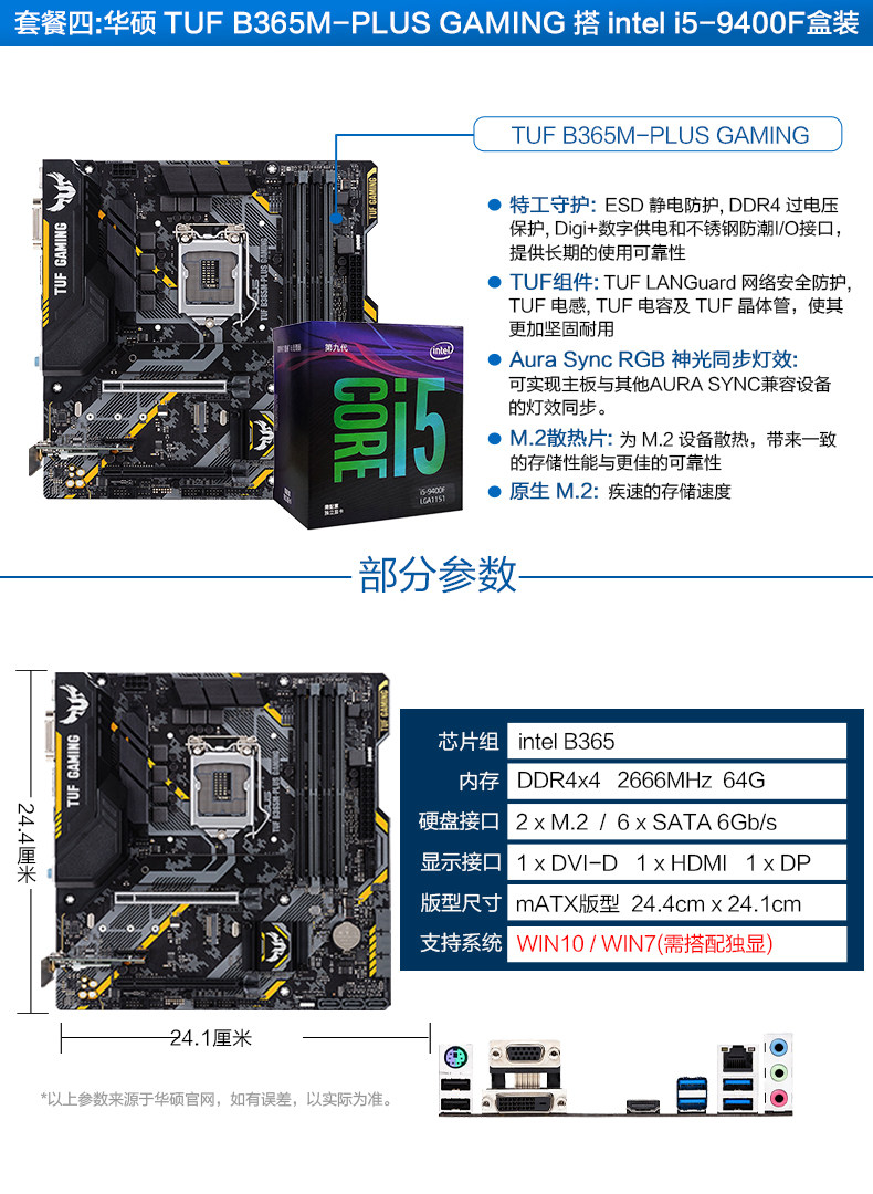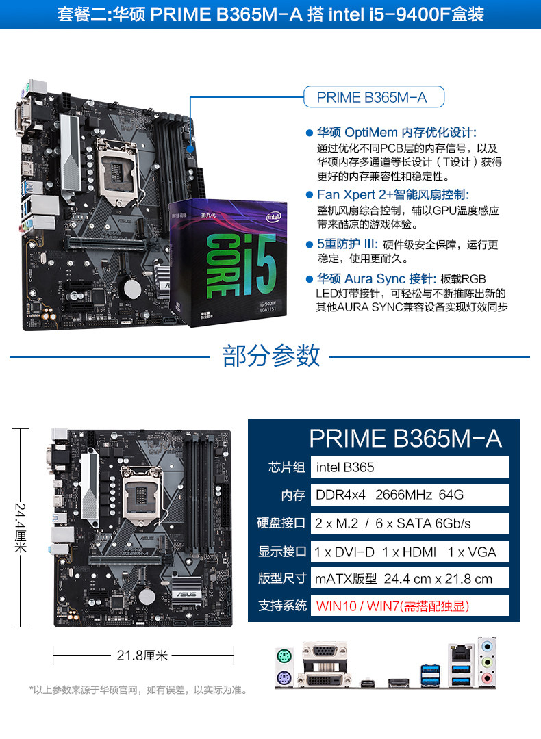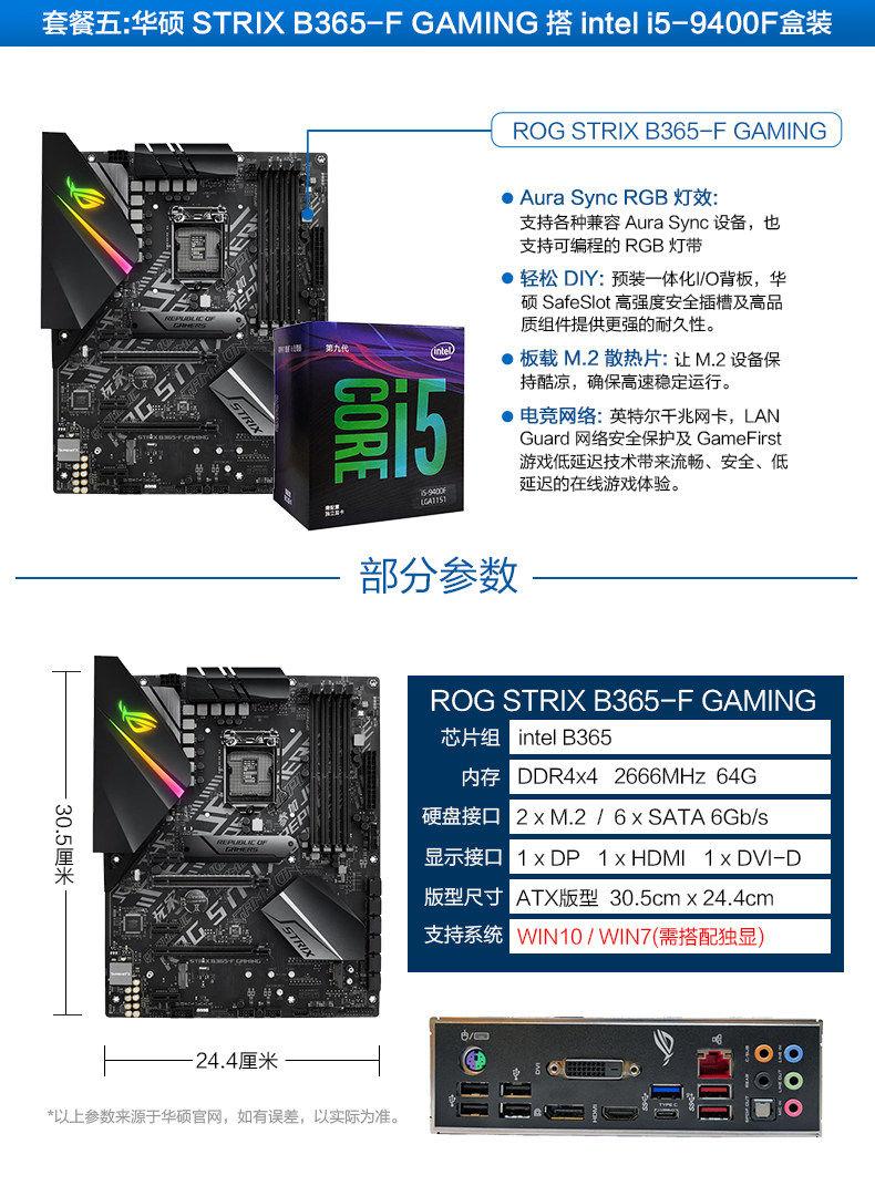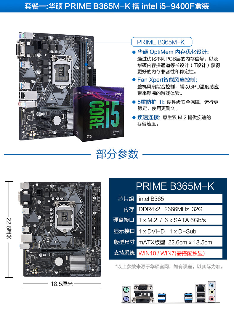 Asus/华硕 B365+I5 9400F Новый процессор Game Motherboard CPU SET B360 Настройка поддержки обновления DDR4