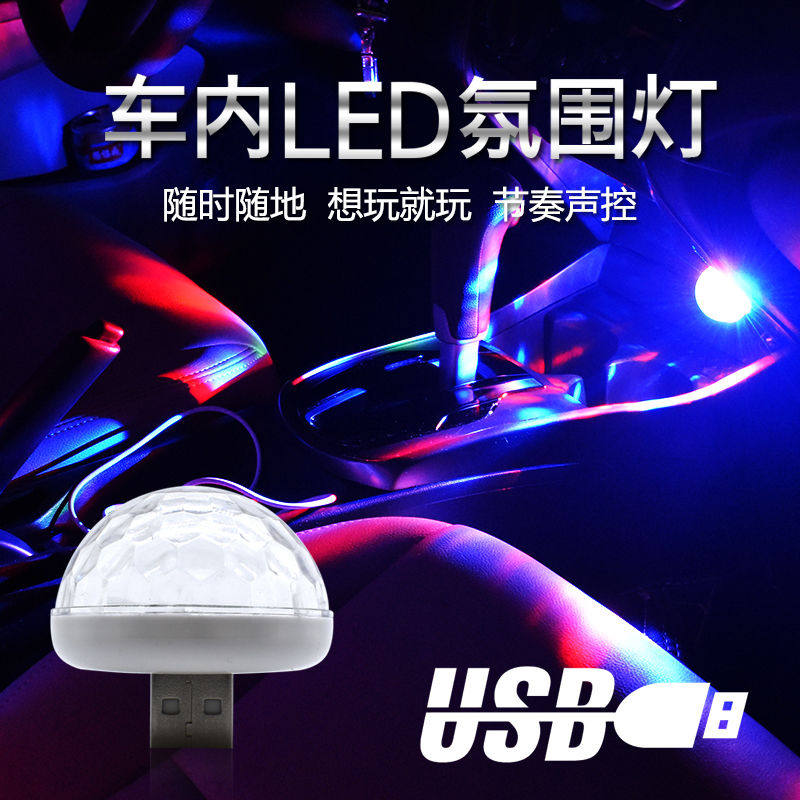Купить 2 Получить 1 автомобиль атмосферу светодиодное управление голосовым управлением мобильный телефон USB Crystal Magic Ball Mini Light красочный DJ Car Atmosphere Light