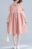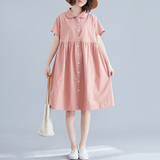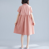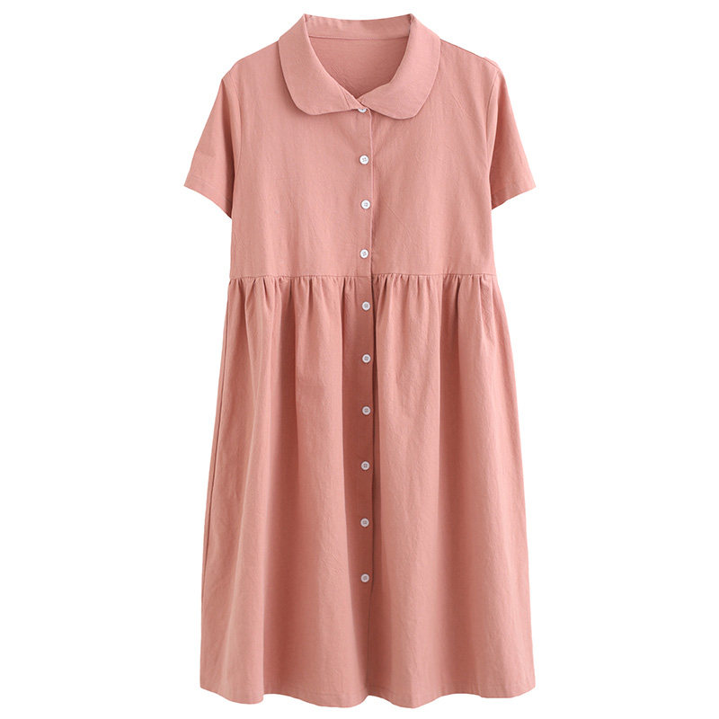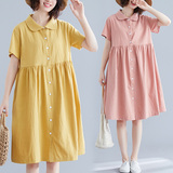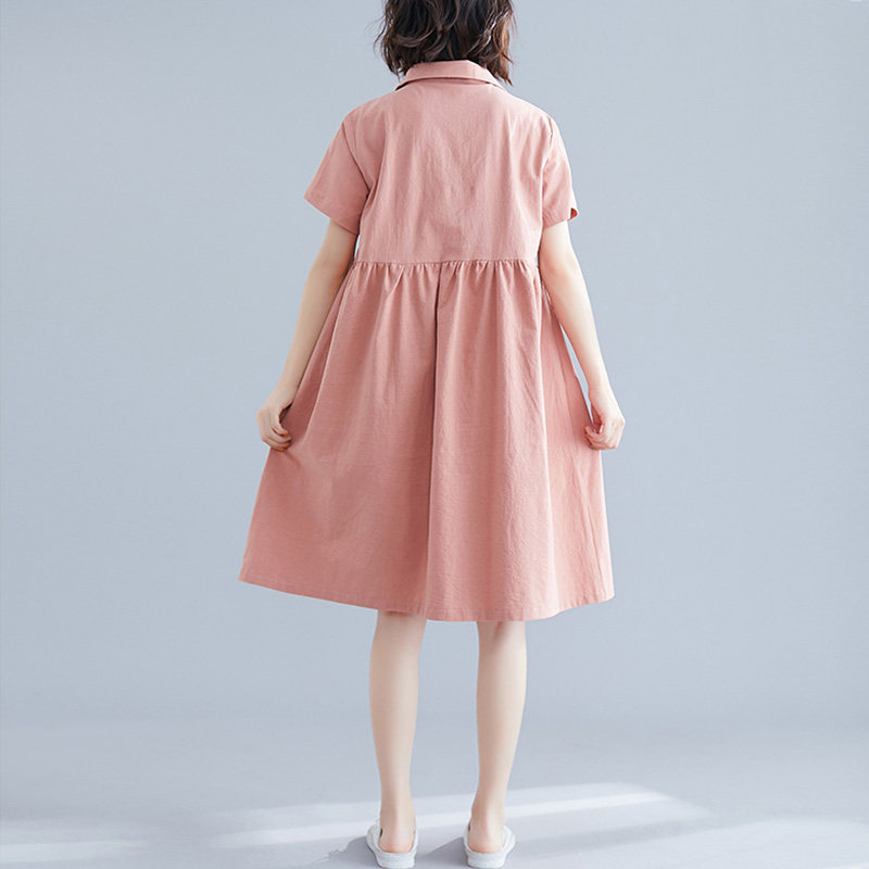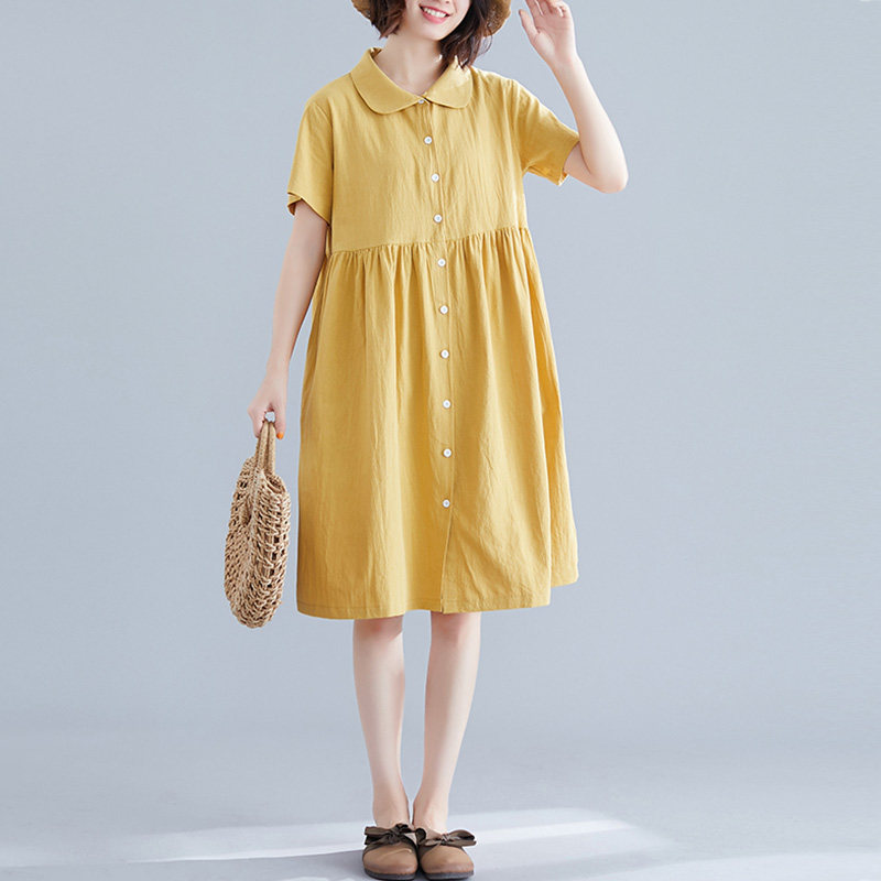 Свежая летняя одежда, рубашка для отдыха, длинное платье, оверсайз, свободный крой, из хлопка и льна, средней длины