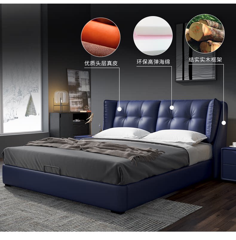 Мамупламальная кровать главная спальня размер квартиры тип 1,8 метра 1,5 метра двуспальная кровать простая современная кровать мягкая мешка кожаная кровать