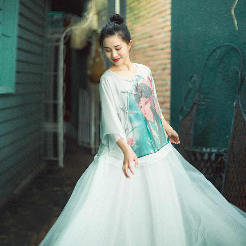 Ретро шифоновая рубашка, кардиган, из хлопка и льна, сезон 2021