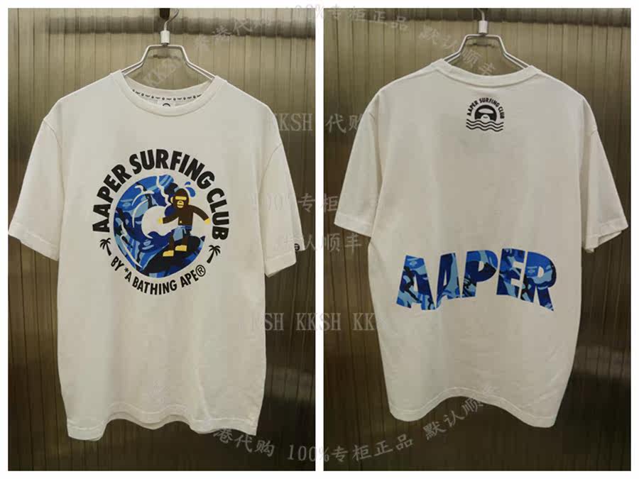 KKSH Гонконг AAPE 19 Summer Men Men Camouflage Surf Ape Печатная хлопчатобумажная футболка с коротким рукавом 0407*