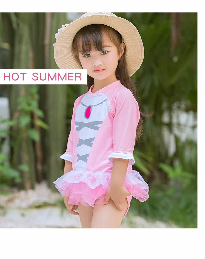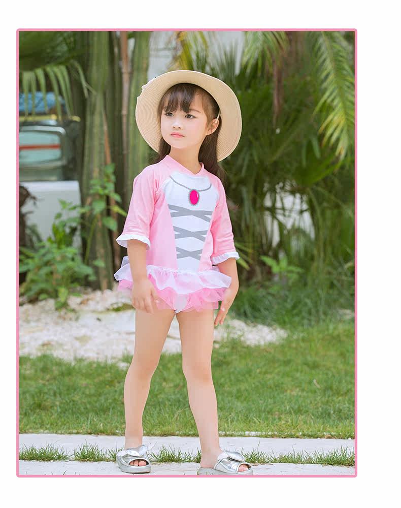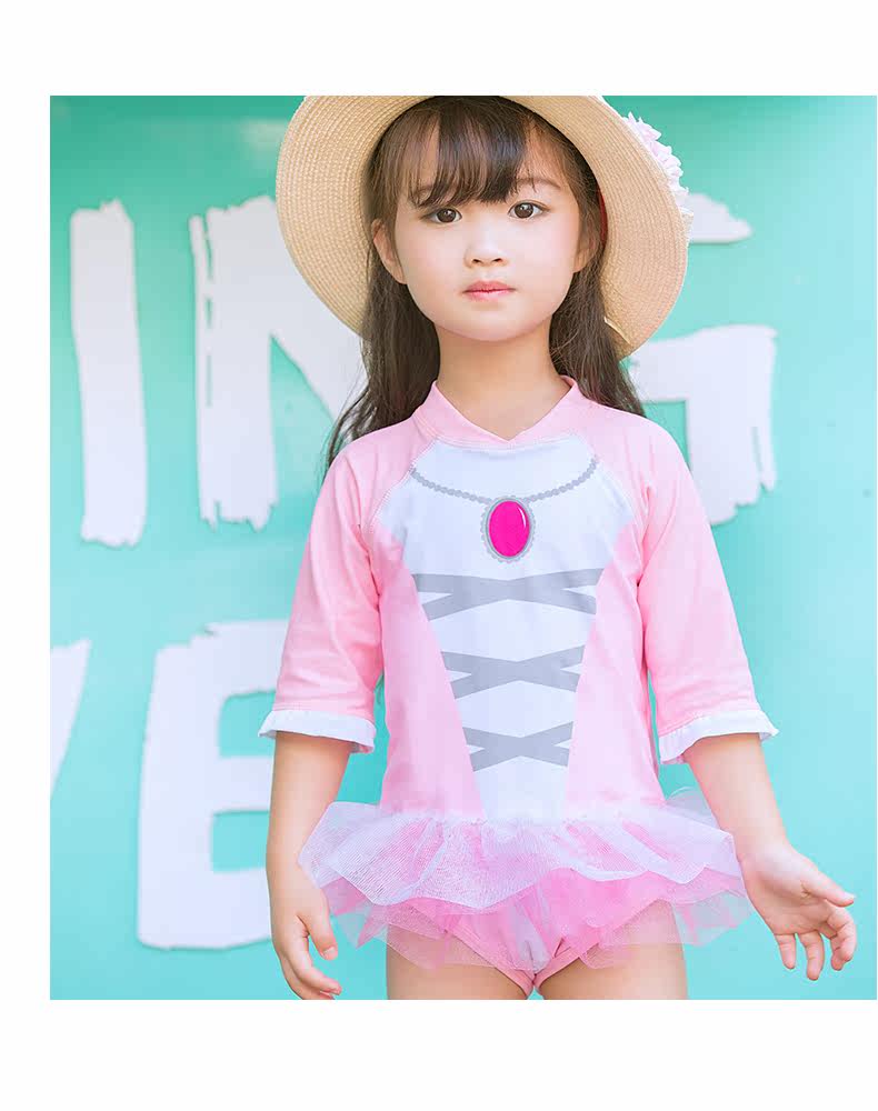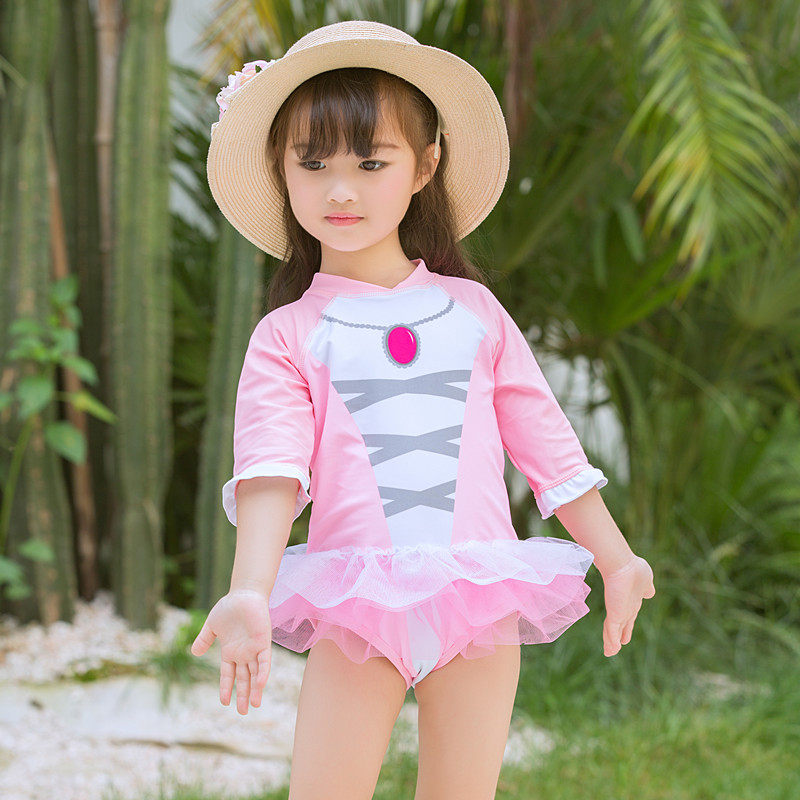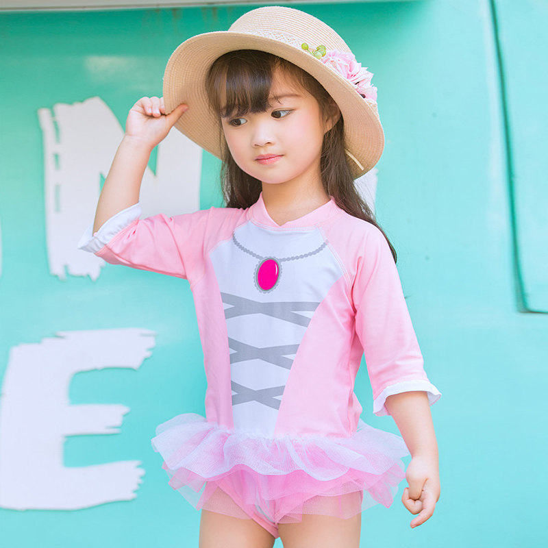 Детский купальник для раннего возраста, розовая подвеска для школьников и студентов, лонгслив с молнией для плавания, юбка-пачка