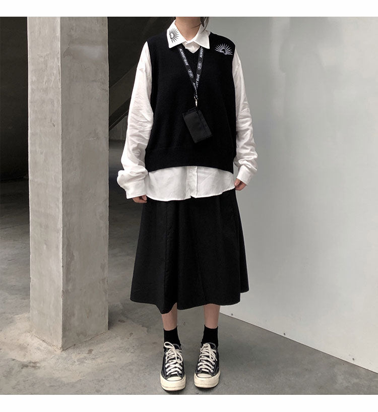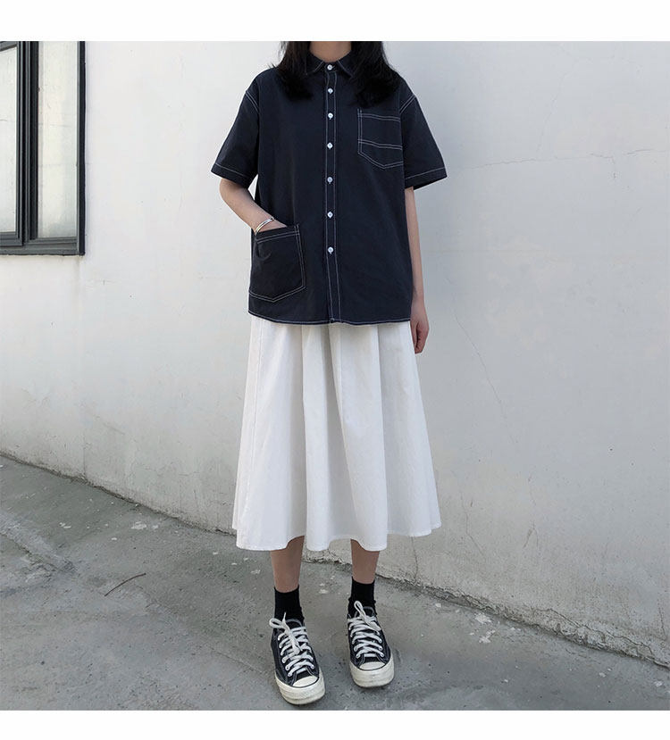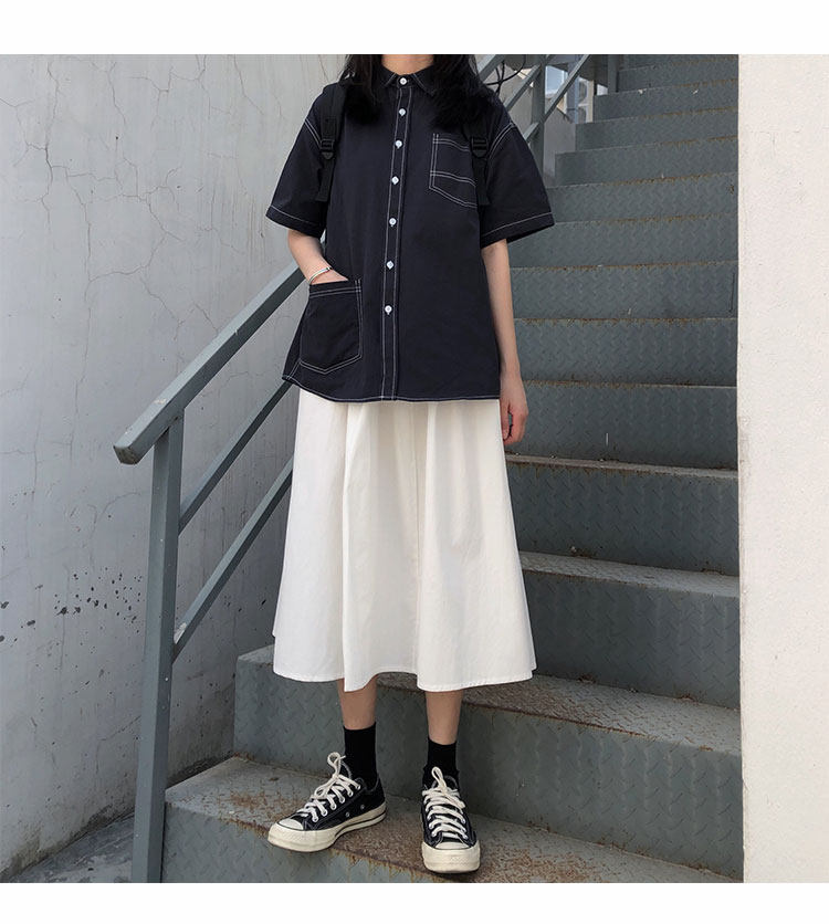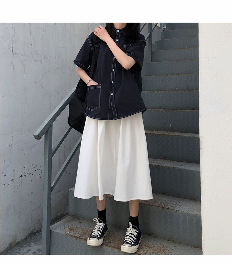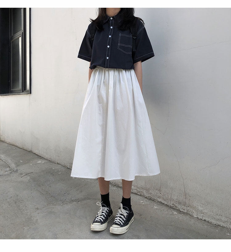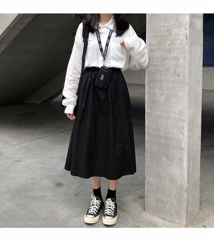 Японская ретро длинная хлопковая юбка для школьников и студентов, средней длины, А-силуэт