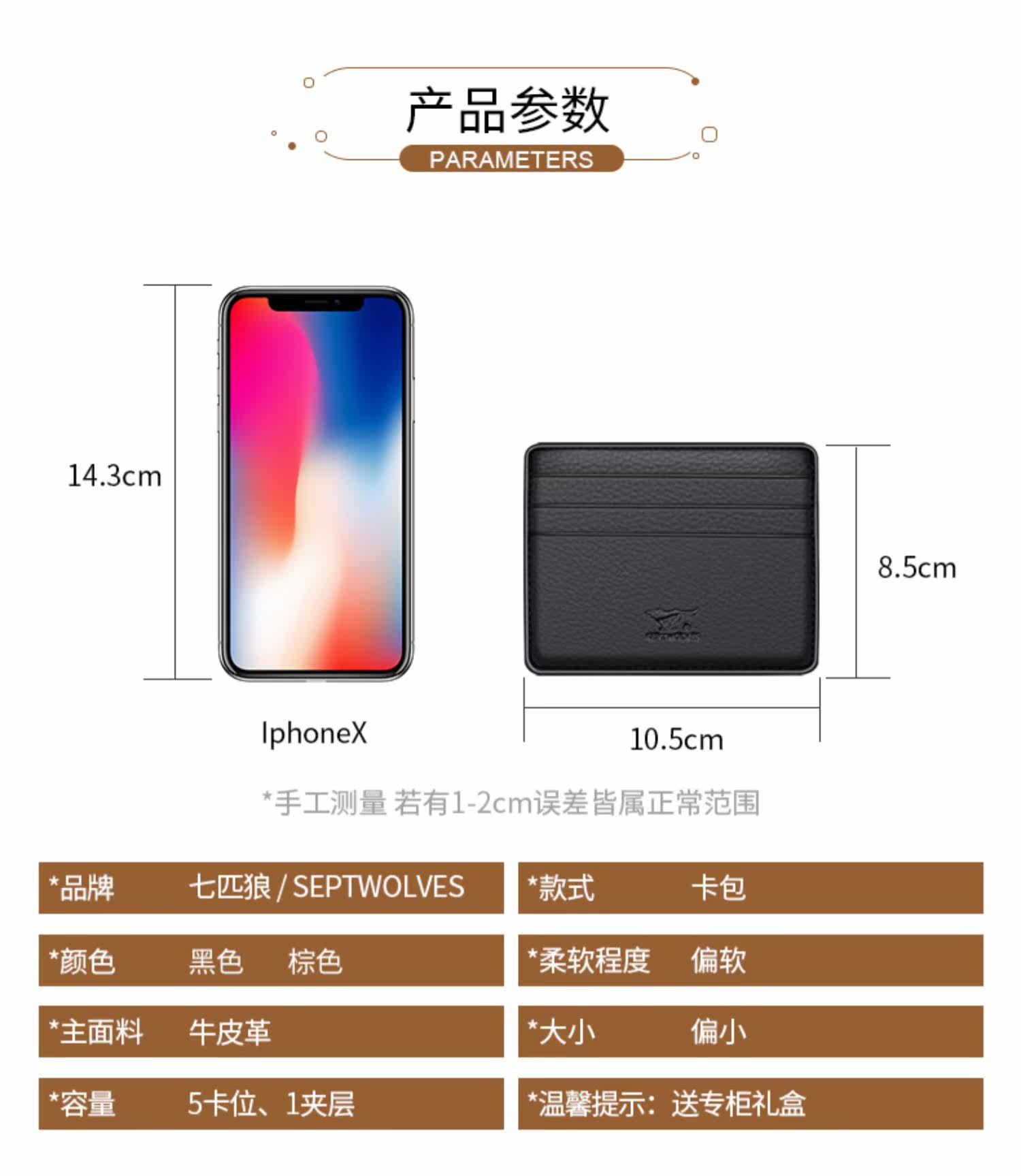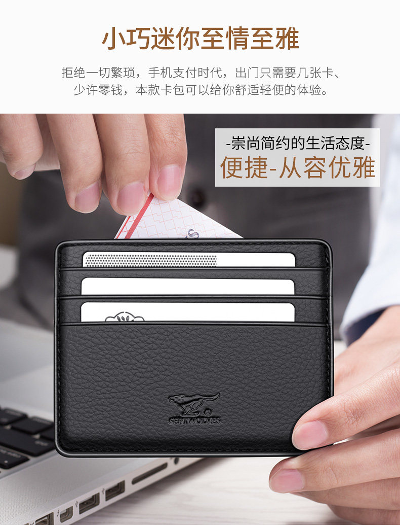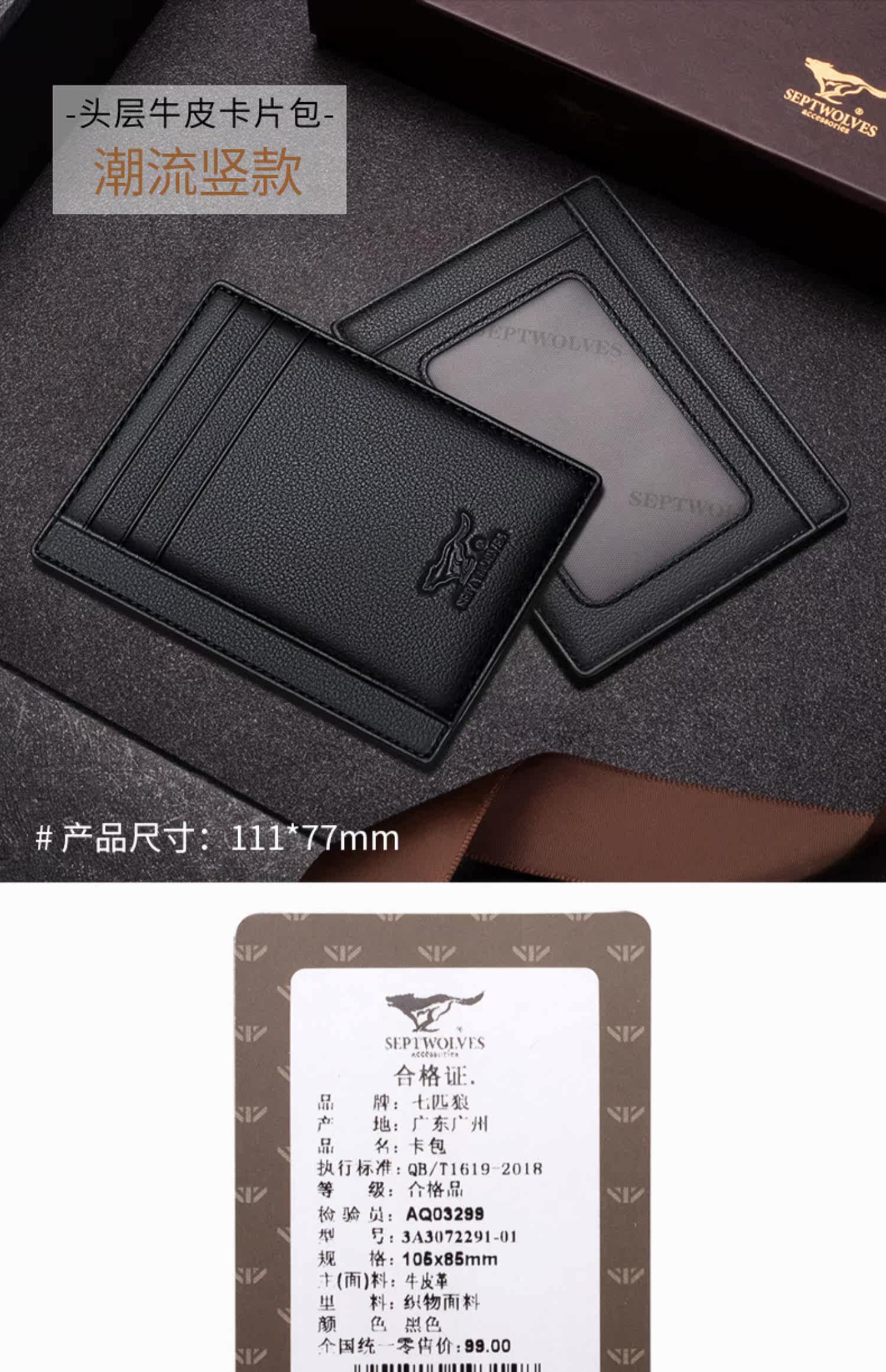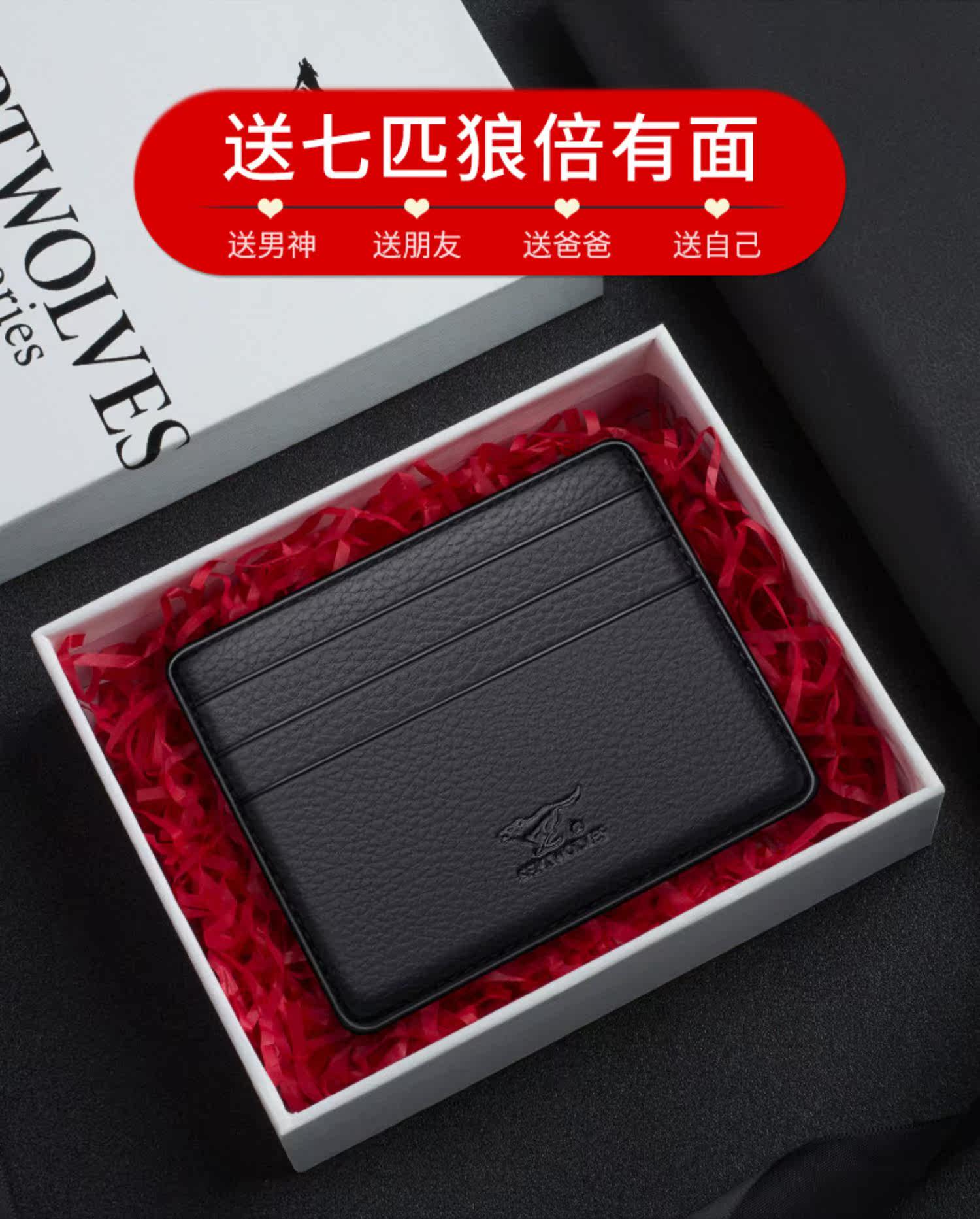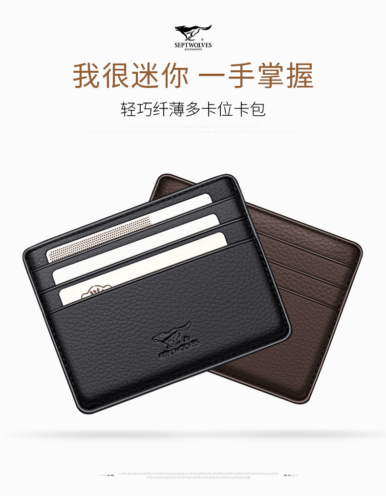 Septwolves, мужской маленький картхолдер, бумажник, карточки, из натуральной кожи
