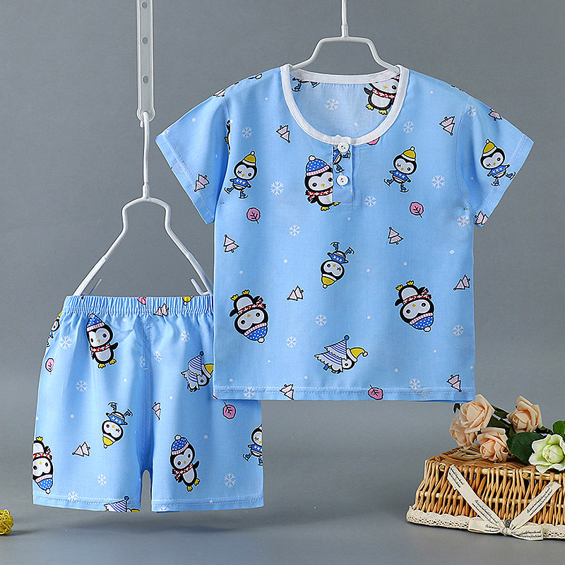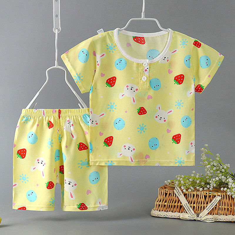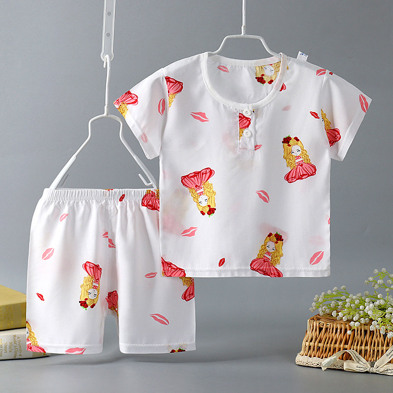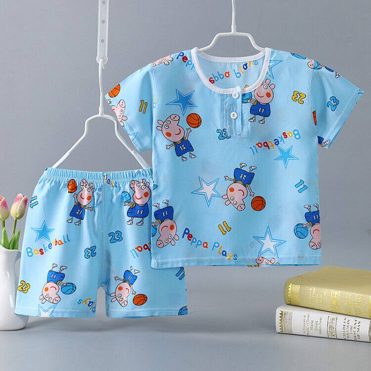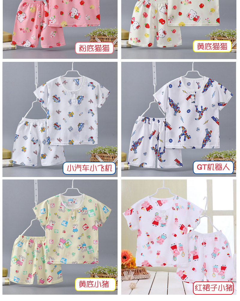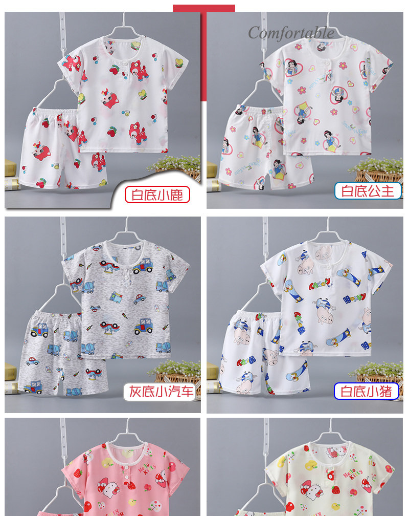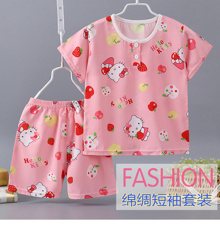 Детская летняя тонкая пижама подходит для мужчин и женщин для девочек, детские осенние нарукавники, комплект, короткий рукав