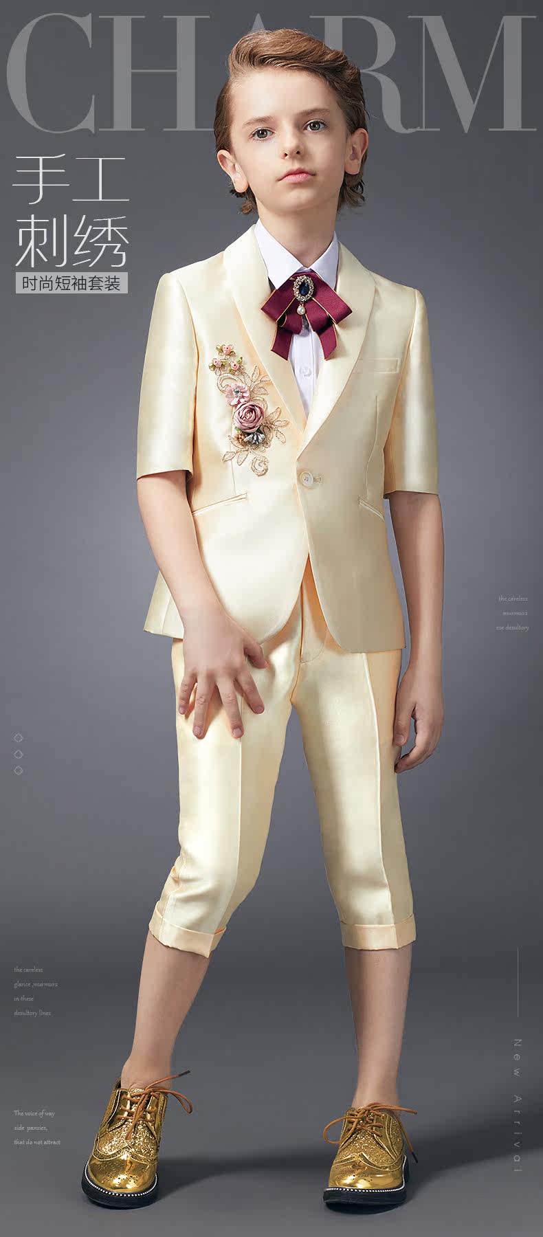 Детский классический костюм, летний костюм мальчика цветочника, пианино, наряд для музыкальных выступлений, платье для мальчиков, короткий рукав