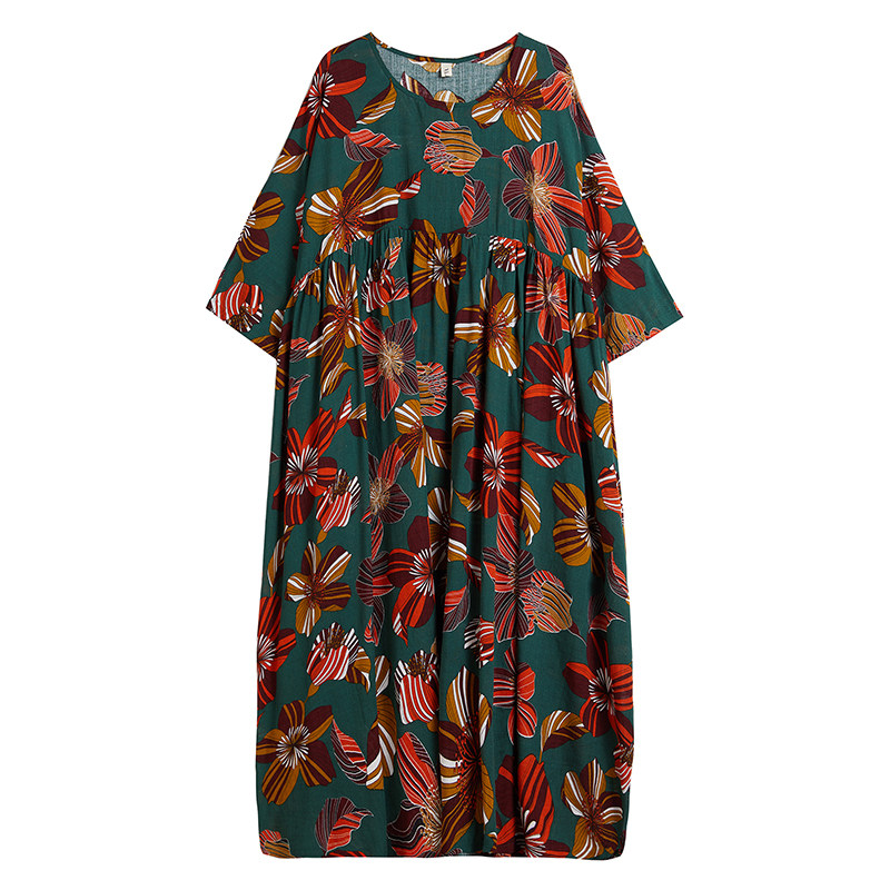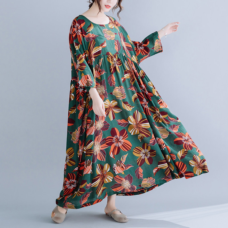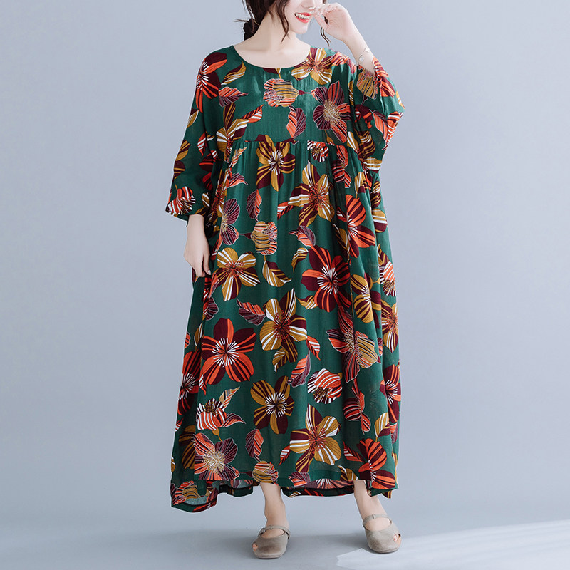 Летняя ретро длинная юбка, платье, сезон 2021, подходит для полных девушек, оверсайз, средней длины, из хлопка и льна