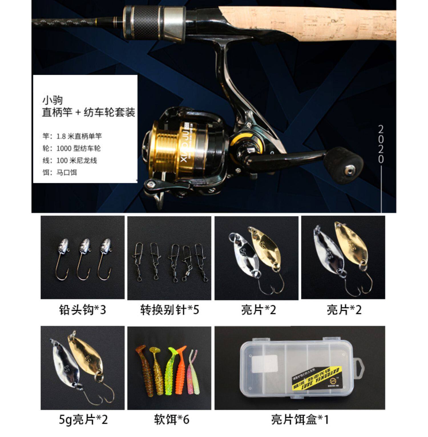 - 1,8 метра прямая ручка полюса+прядильное колесо+приманка+линия