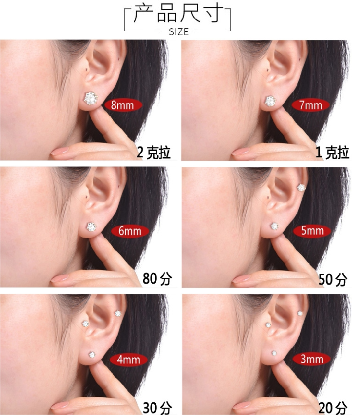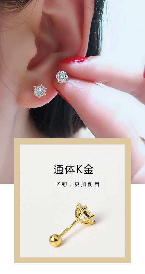 18-каратный золотой винт с муассанитом и бриллиантами, шпилька для ушей с шестью когтями, 20 минут 50 минут, 1 карат, женский корейский мини-гвоздь для ушей
