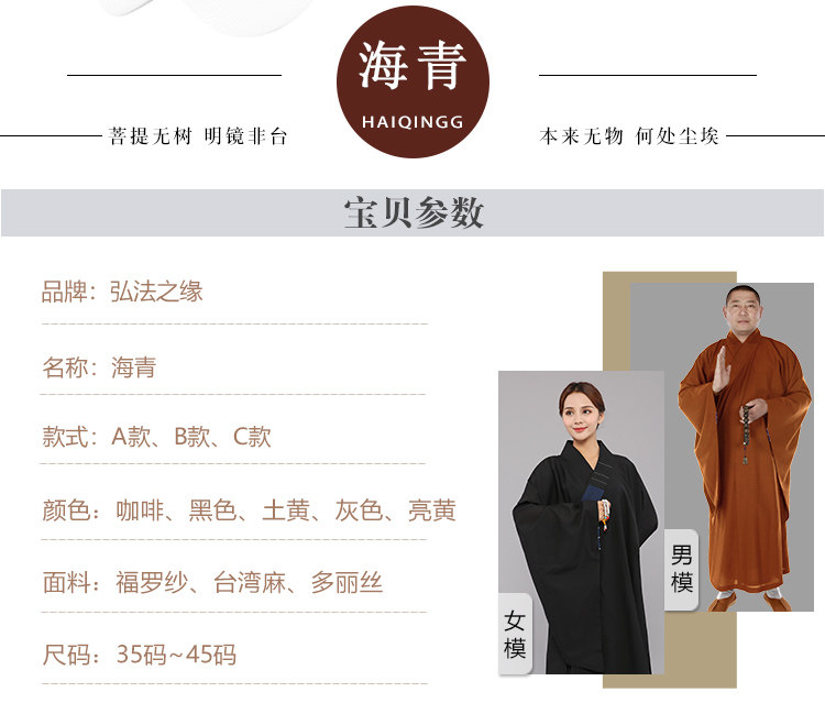 Huiwu Monk одежда Haiqingjushi Service Женский монах, одежда, мужская буддийская одежда Zen Xiu Xiu Xiu, чтобы преобразовать в Хайкин
