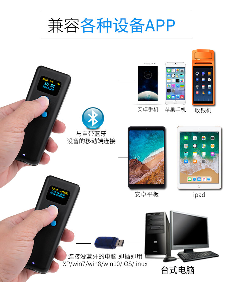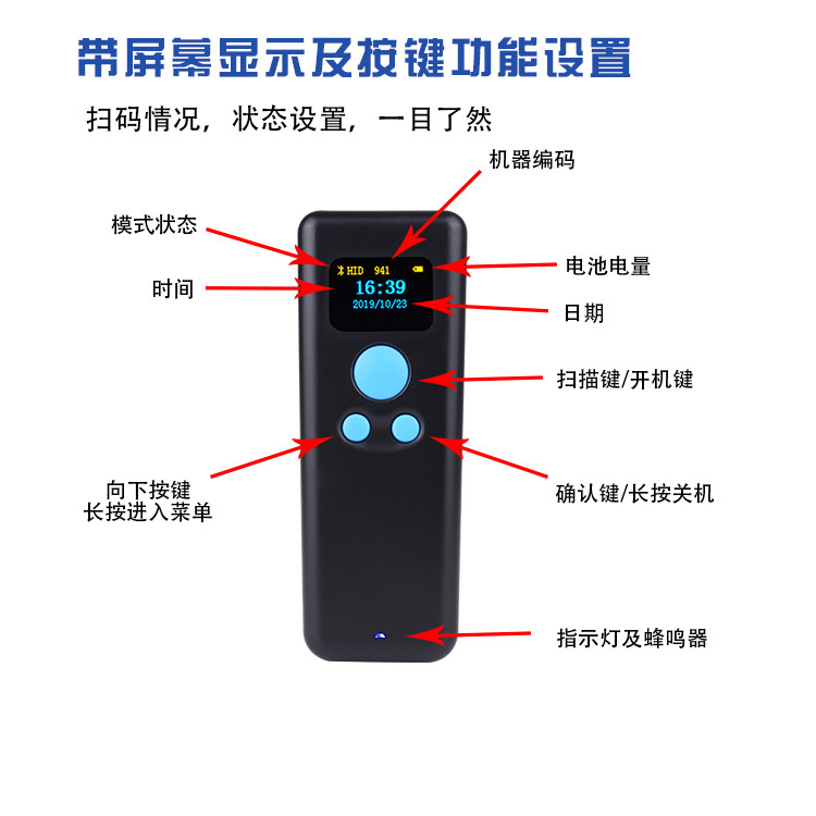 钰牛 Портативный Bluetooth-сканер QR-кода M8 с экраном, сканирующий пистолет для экспресс-заказа, беспроводной пистолет Mier
