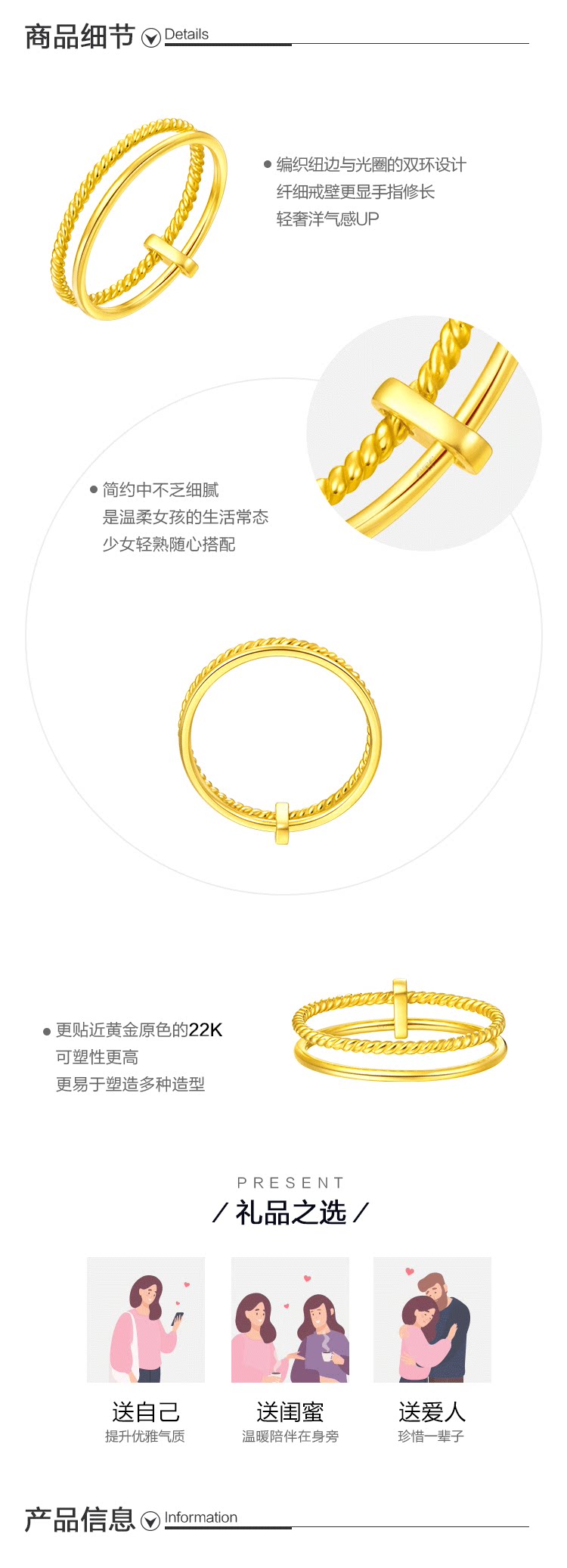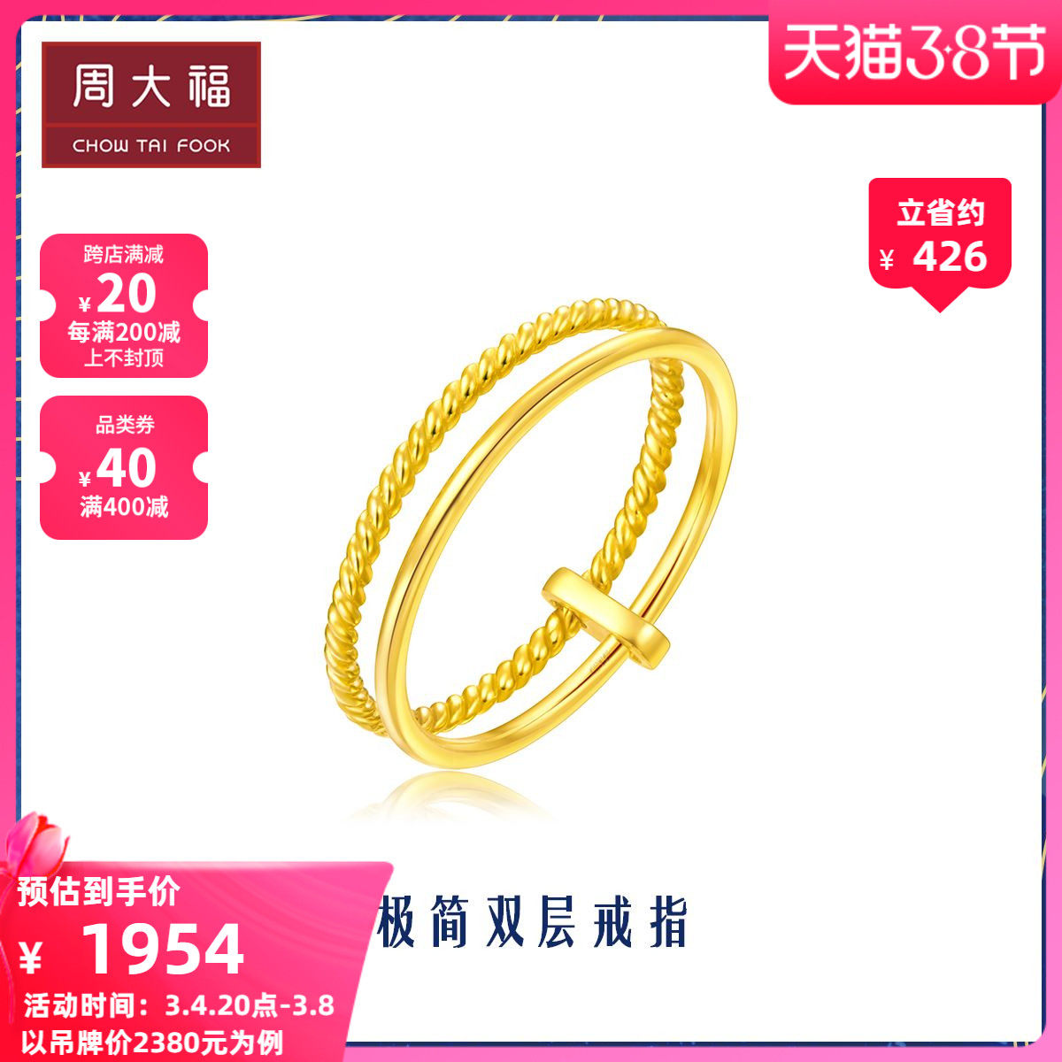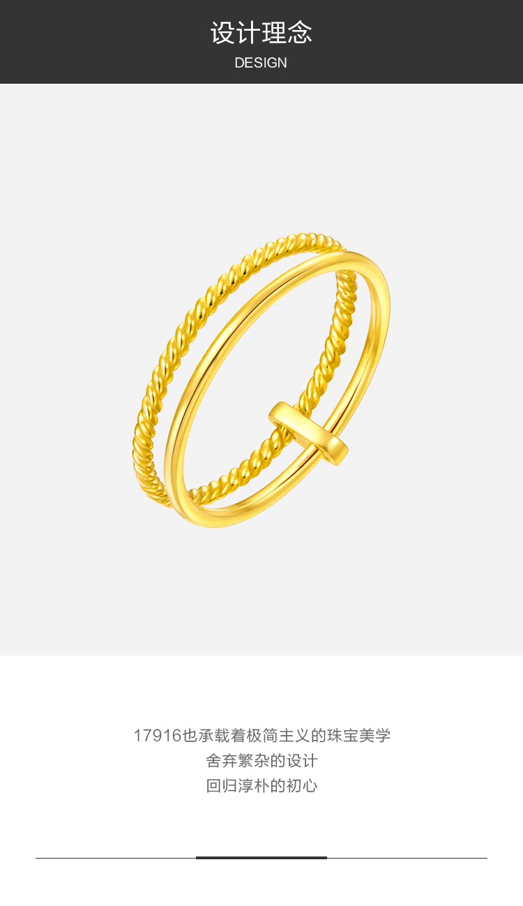 周大福 17916 серия изысканных двойных 22k Gold Ring E123414