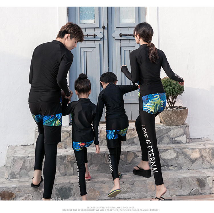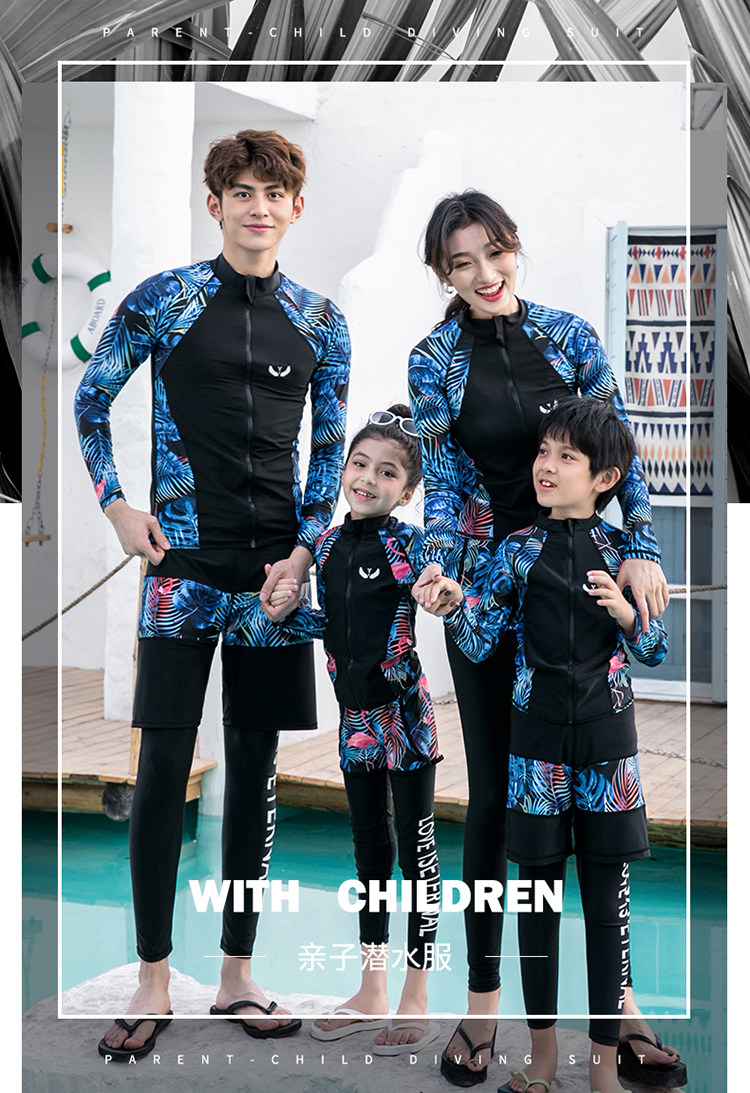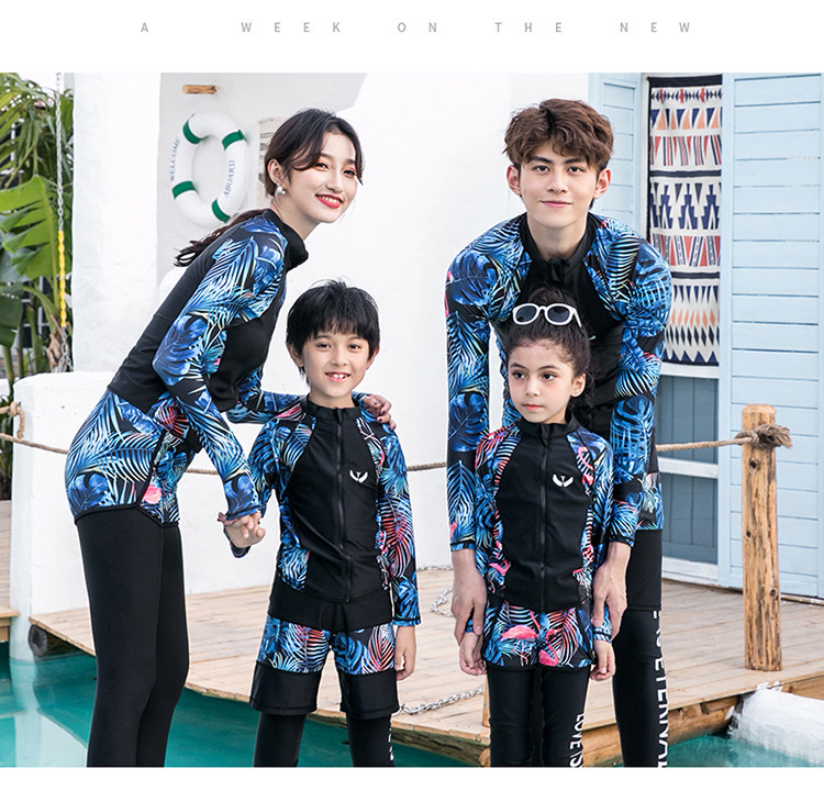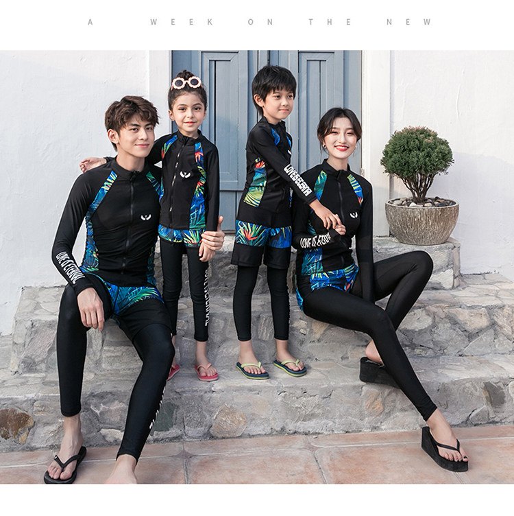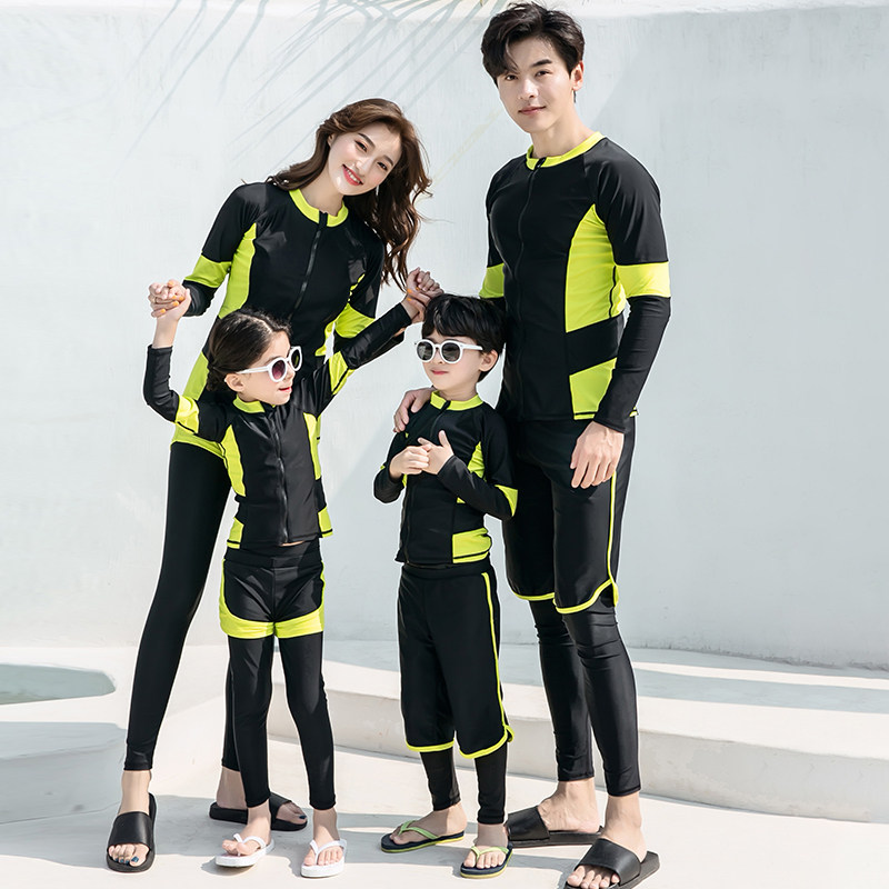 Детский купальник подходит для мужчин и женщин, лонгслив, быстросохнущие штаны с молнией, семейный стиль, подходит для подростков, защита от солнца