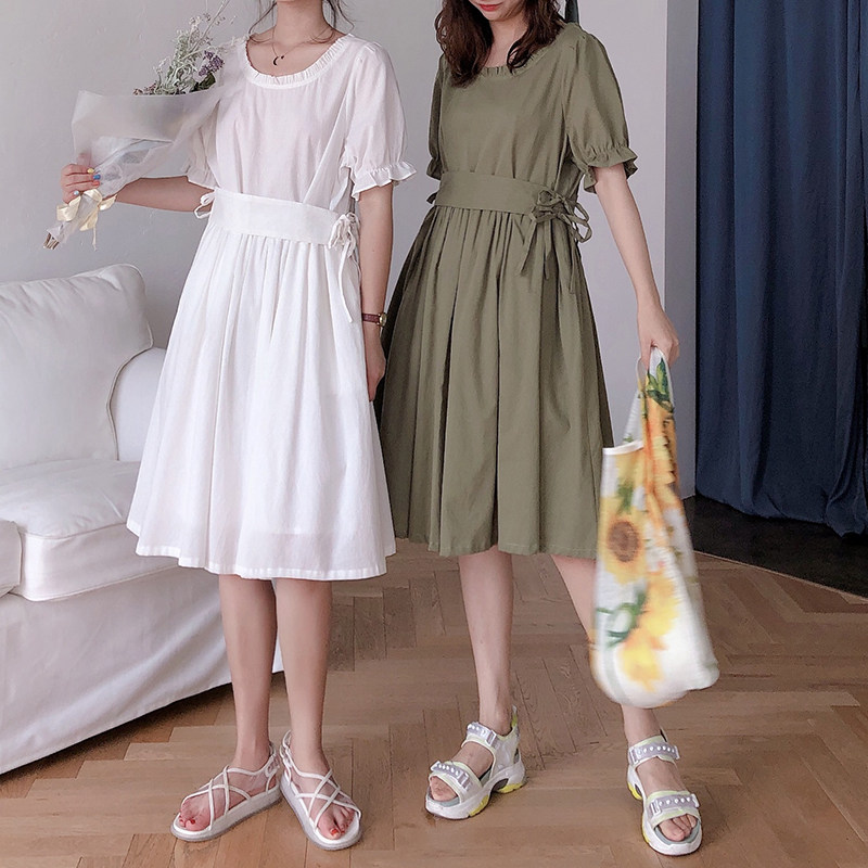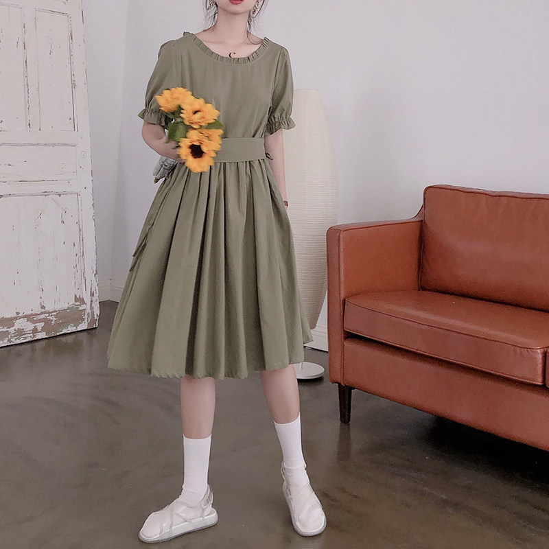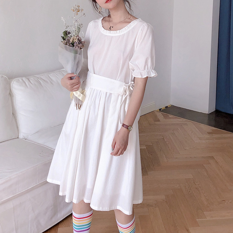 Платье, ремень, белая юбка, французский стиль, простой и элегантный дизайн, стиль Лолита, большой размер