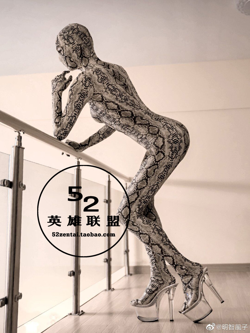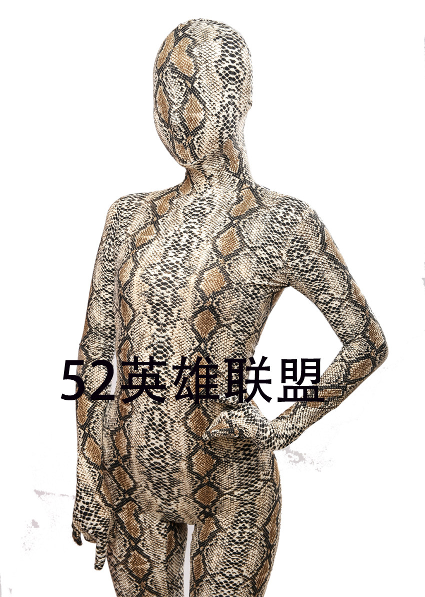 Эксклюзивная узор змеи -все -инклюзивное сплоченное упругое упругое лака Zentai Snake Skin Clothing Stage Performance Complay Olde