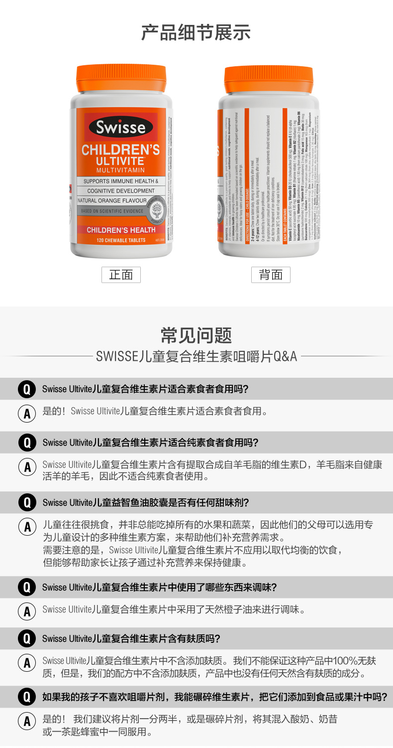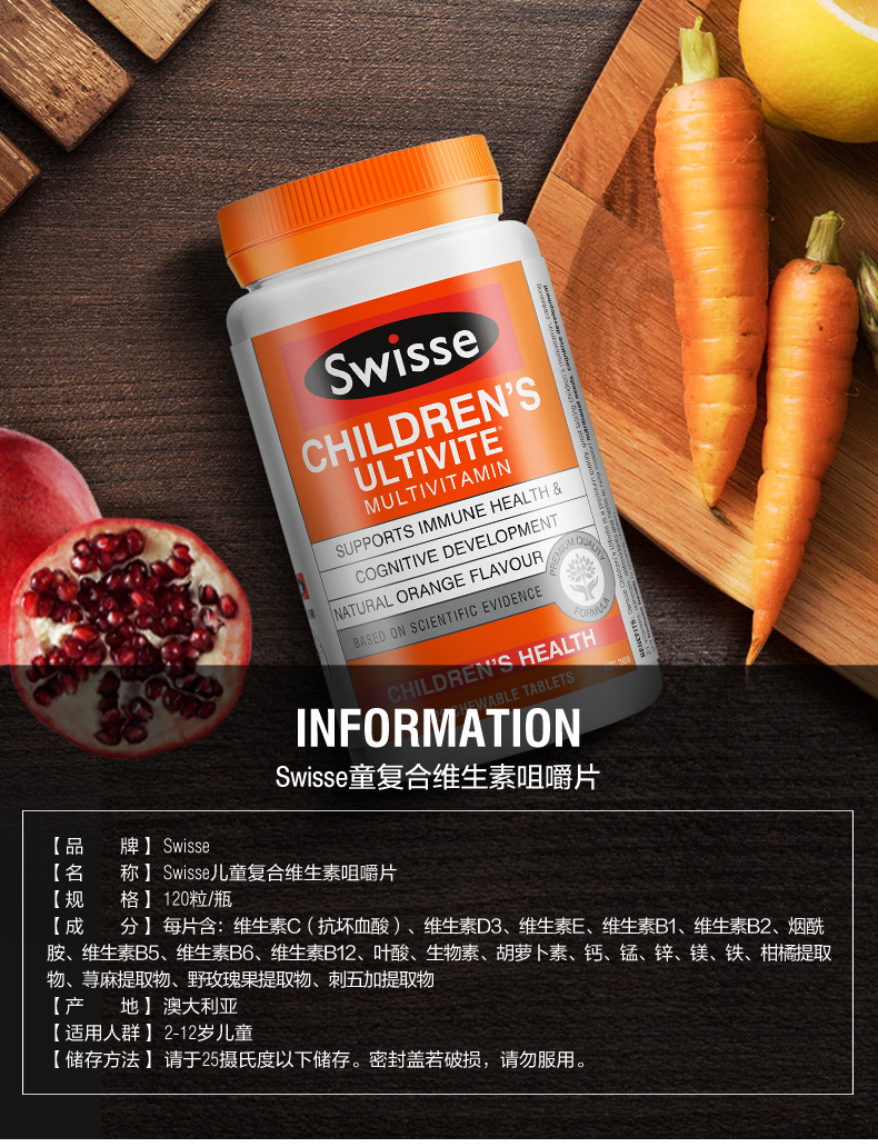 Swisse Baby Kids Композитный витамин жевательные таблетки апельсиновый аромат 120 Многочисленные добавки кальция D3*2 бутылки
