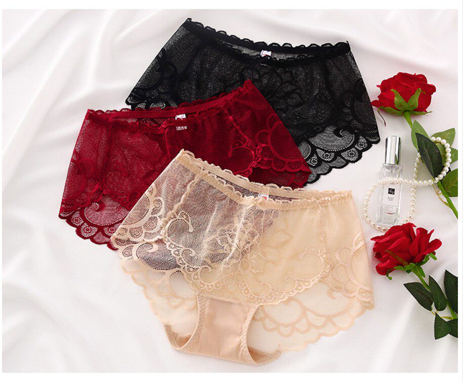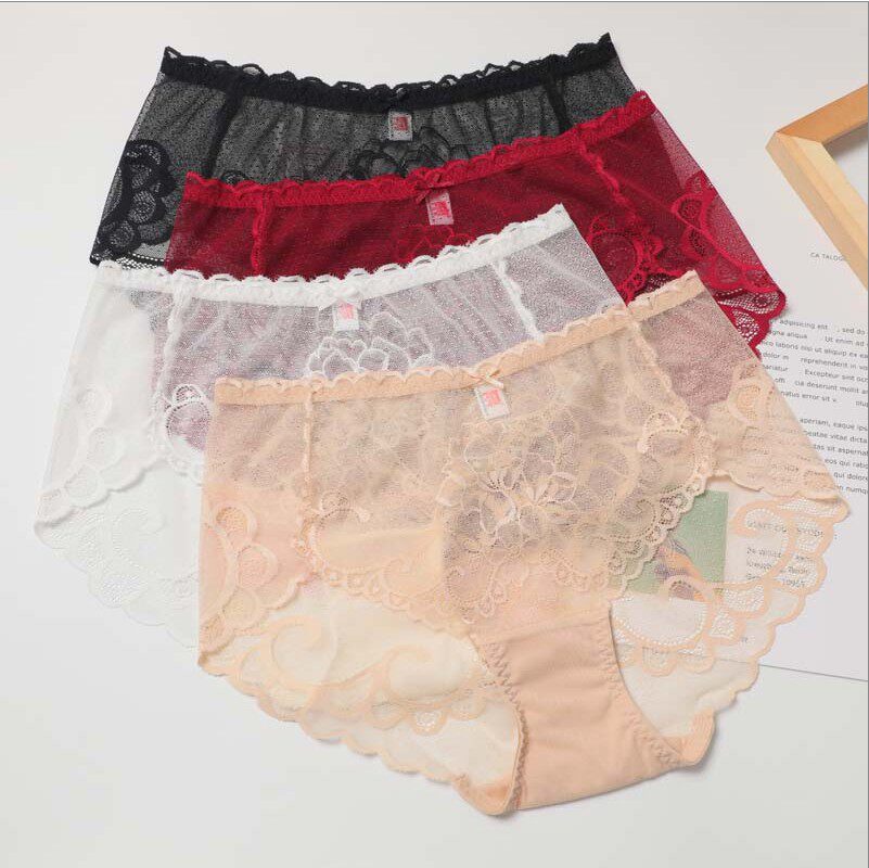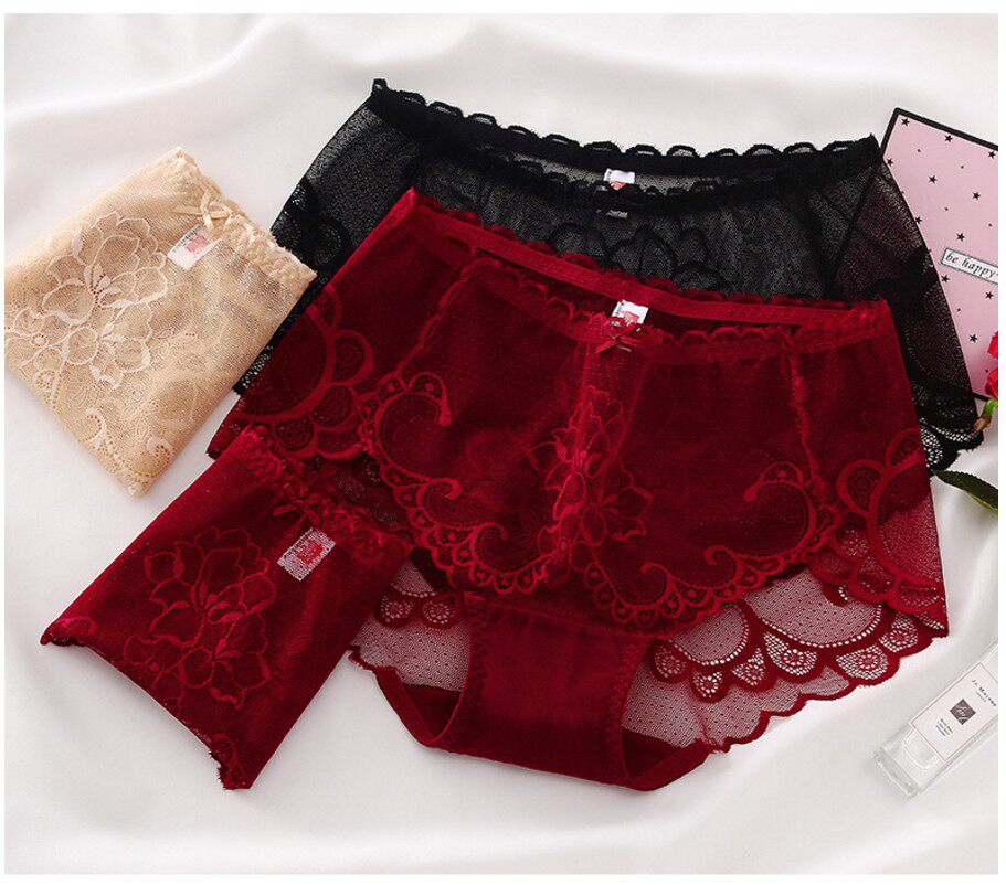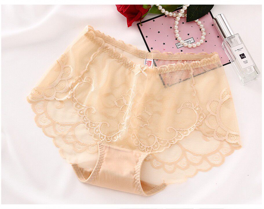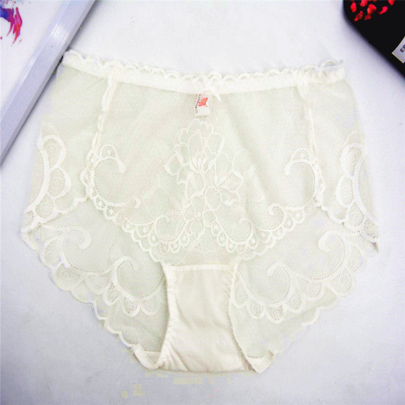Белые трусы, кружевные штаны, с вышивкой, свободный крой, средняя посадка