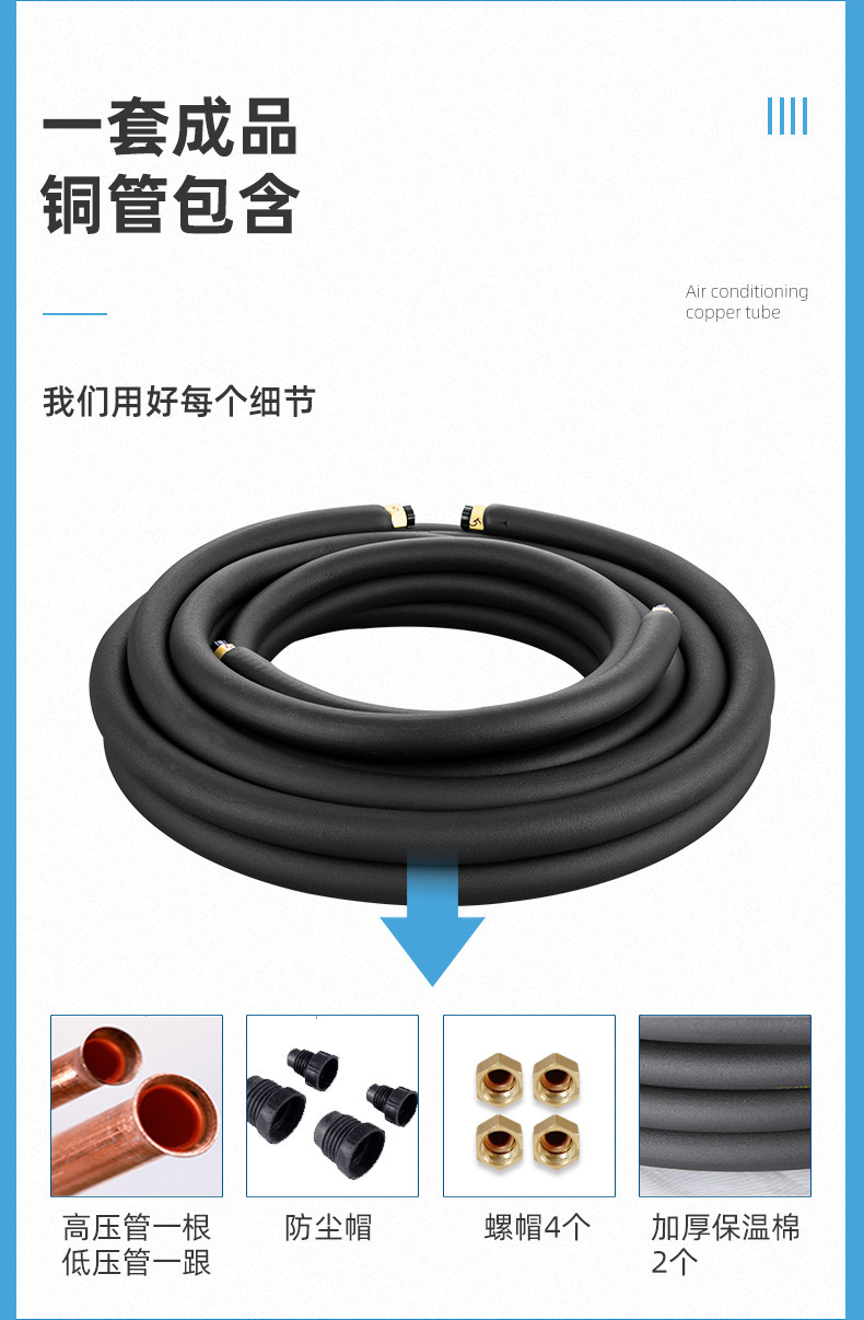 贝石 Подходит для кондиционирования воздуха Aux Mopper Pipe готовые изделия сгущенным и расширенным соединением чистая медная изоляционная труба 1.5p2p3p