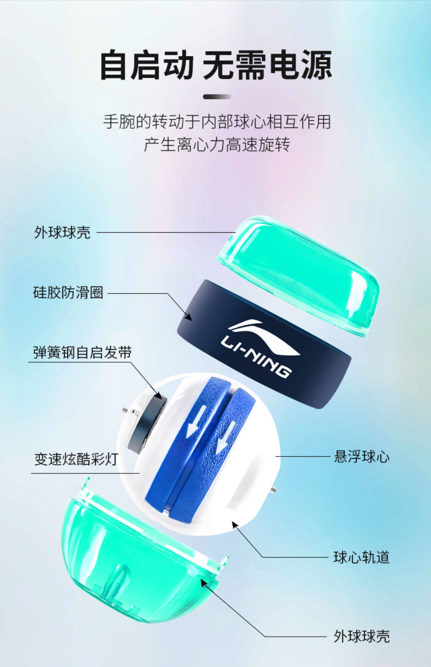 Li Ning Force Force Ball Professional Student Self -начальная статическая декомпрессия Центробежная запястье Устройство запясть