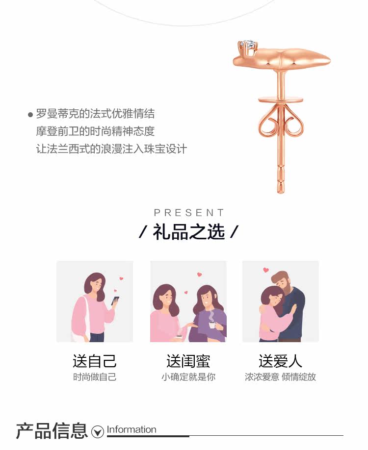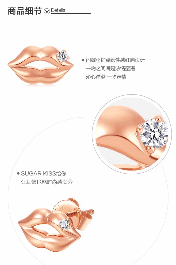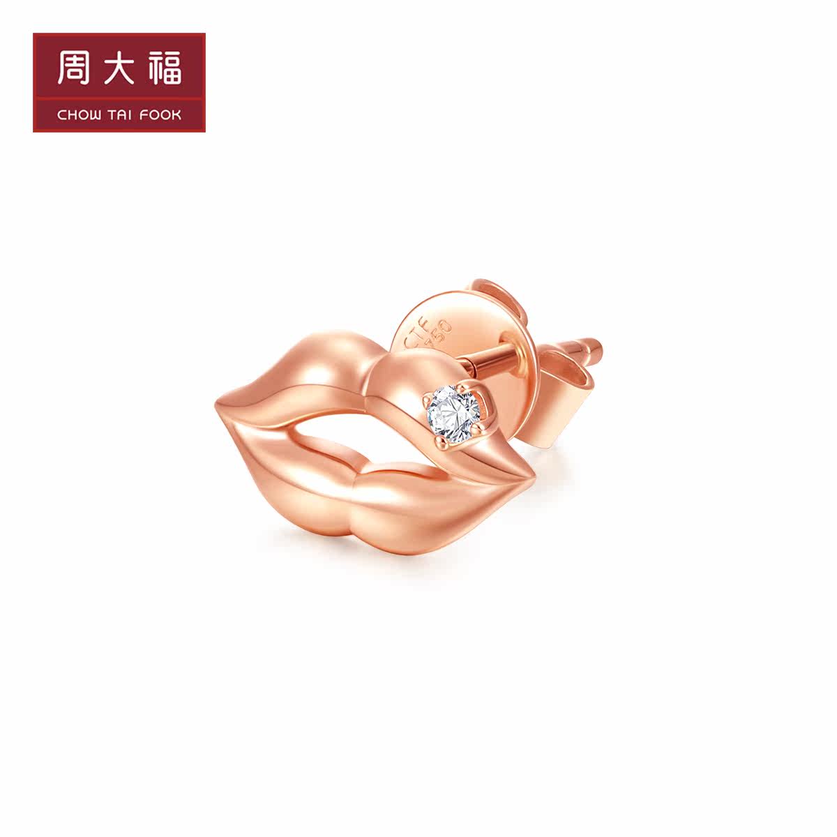 周大福 Современный праздничный сахар поцелуй 18K золотые алмазные серьги (сингл) U177839 Выбор подарков