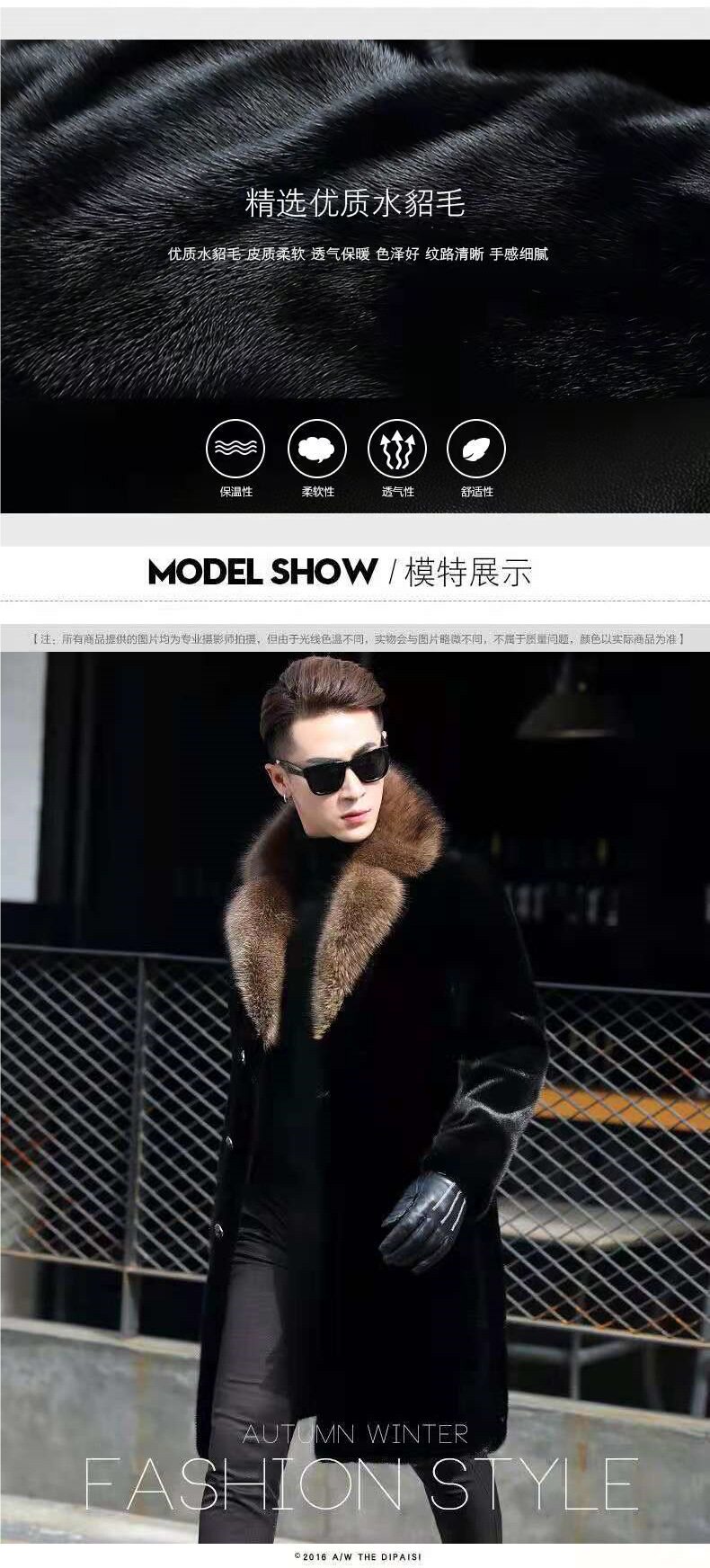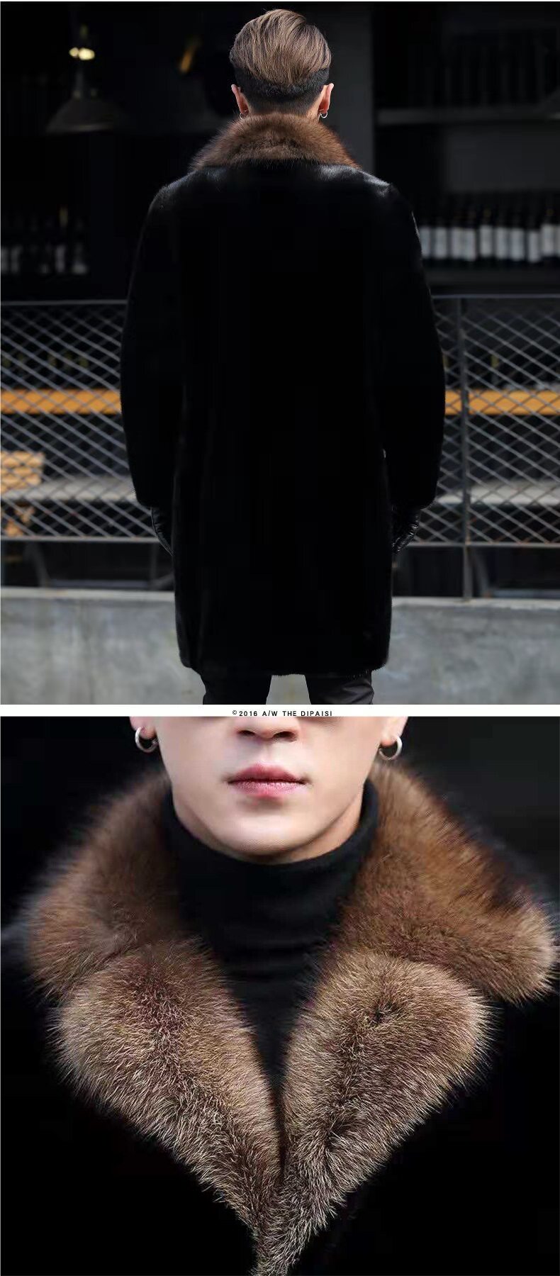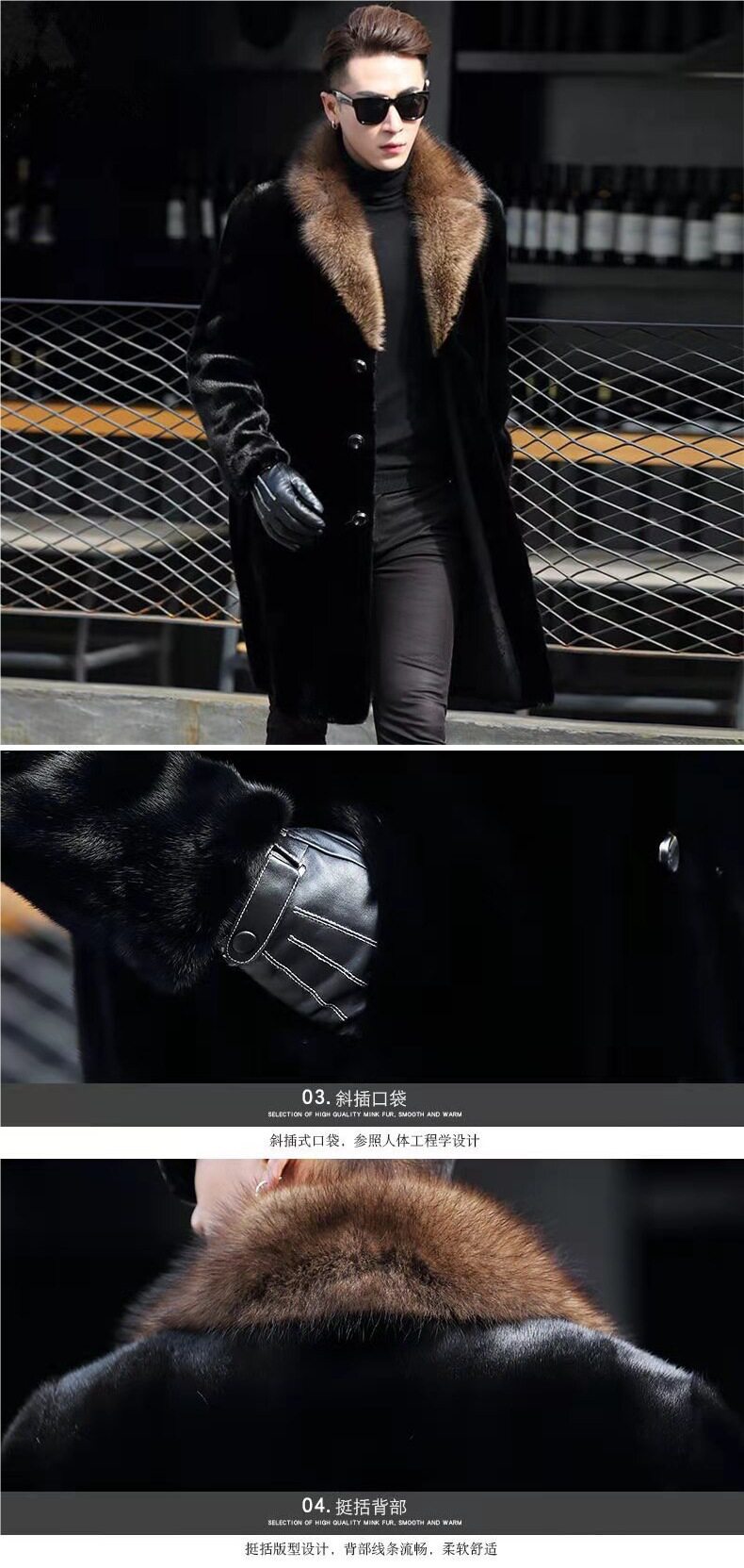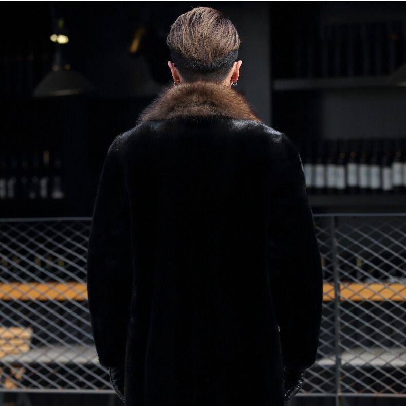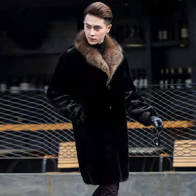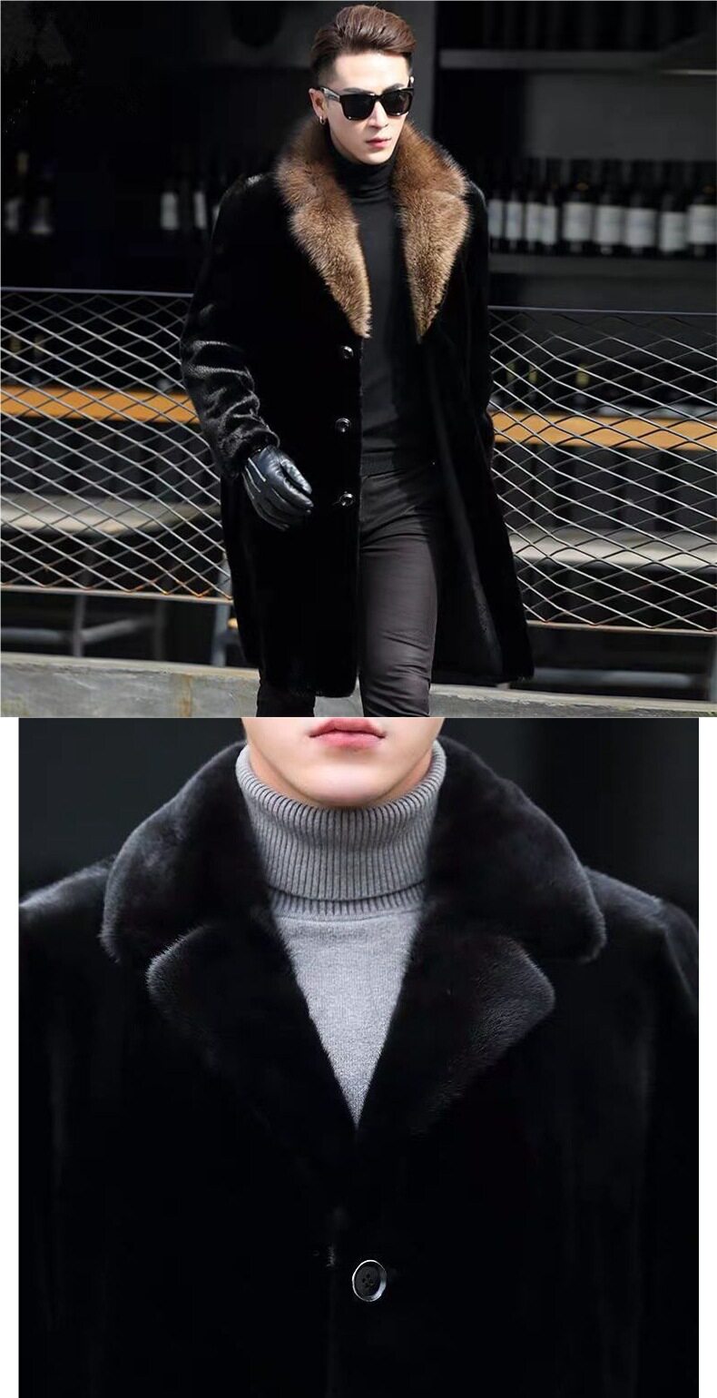 [Норковая шуба] Мужская утолщенная длинная версия костюма с меховым воротником Шуба Теплая меховая деловая повседневная ветровка