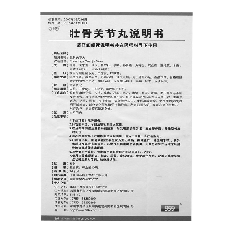 999 Сильные костяные суставы 6G*10 мешков/ног коробки Ревматоидный артрит.