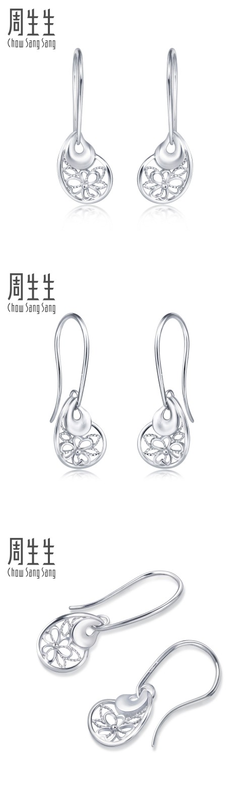周生生 Платиновые серьги, платина 950 пробы