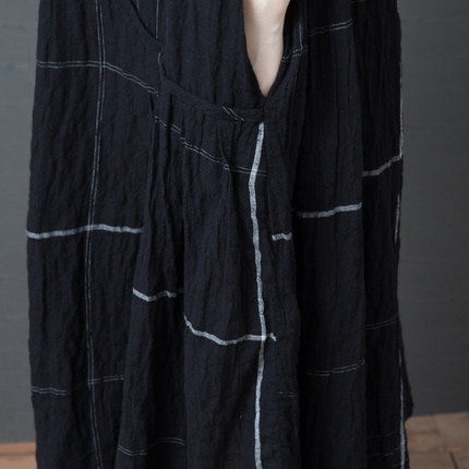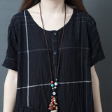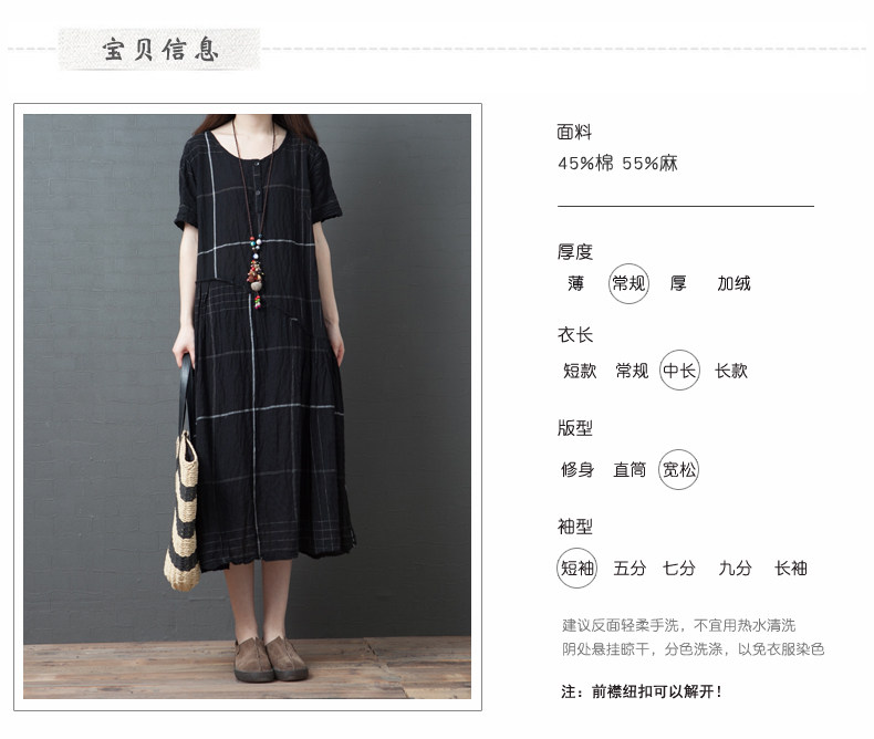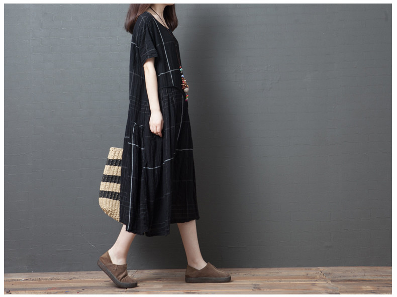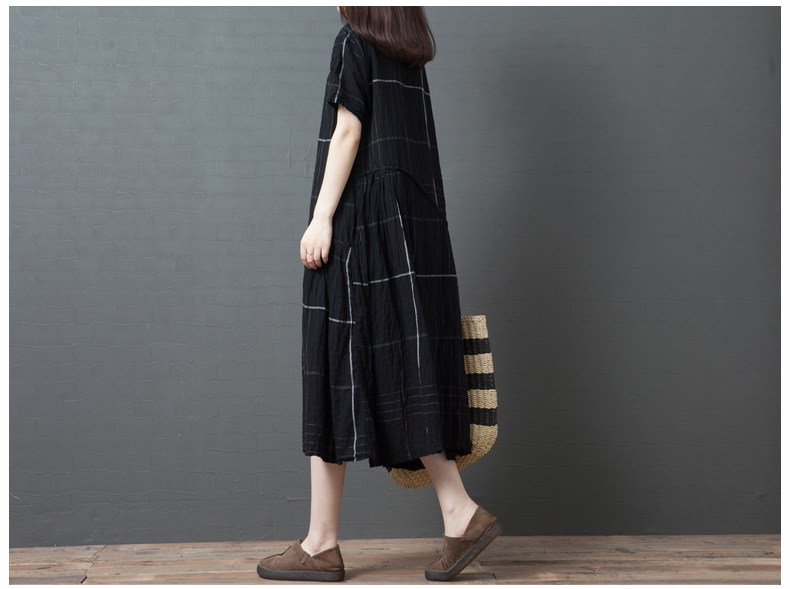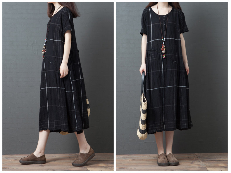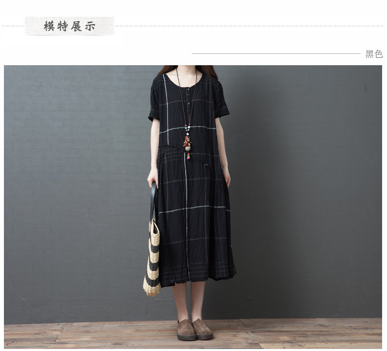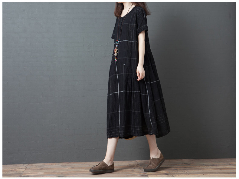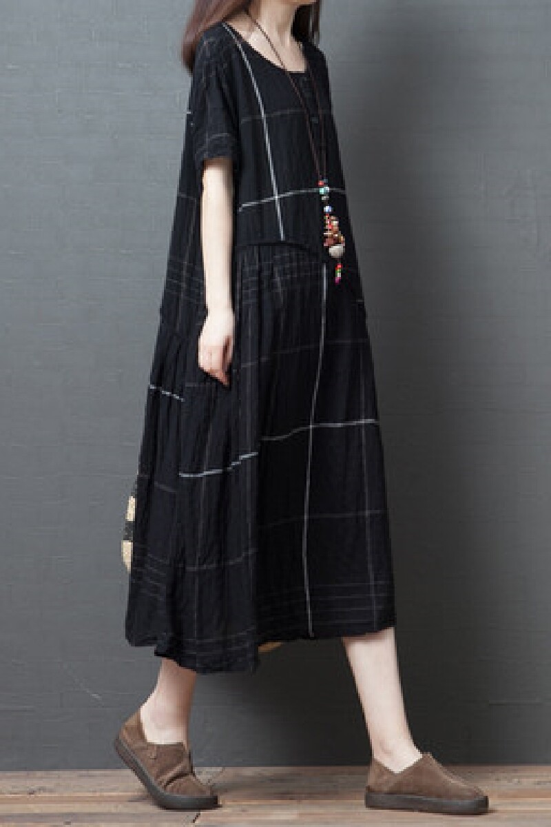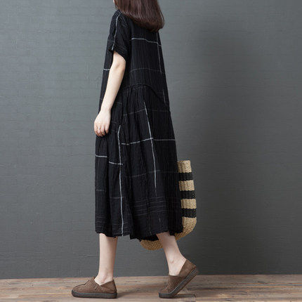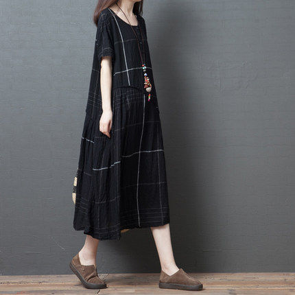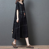 Ретро летнее платье с коротким рукавом, модная длинная юбка, большой размер, свободный крой, из хлопка и льна, средней длины