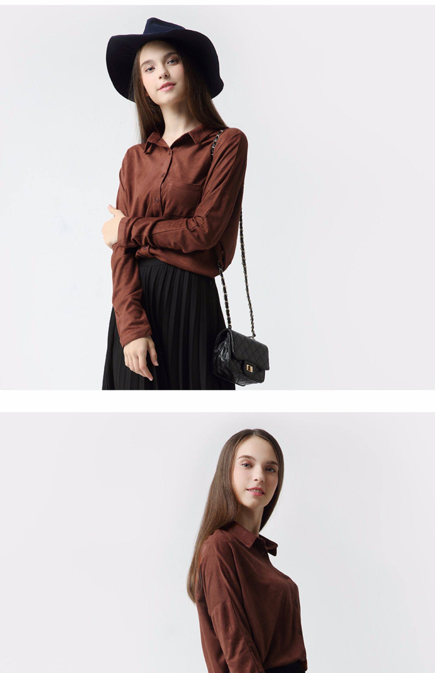 艾米恋 Ретро демисезонная однотонная бархатная рубашка, французский ретро стиль, свободный крой, 2020