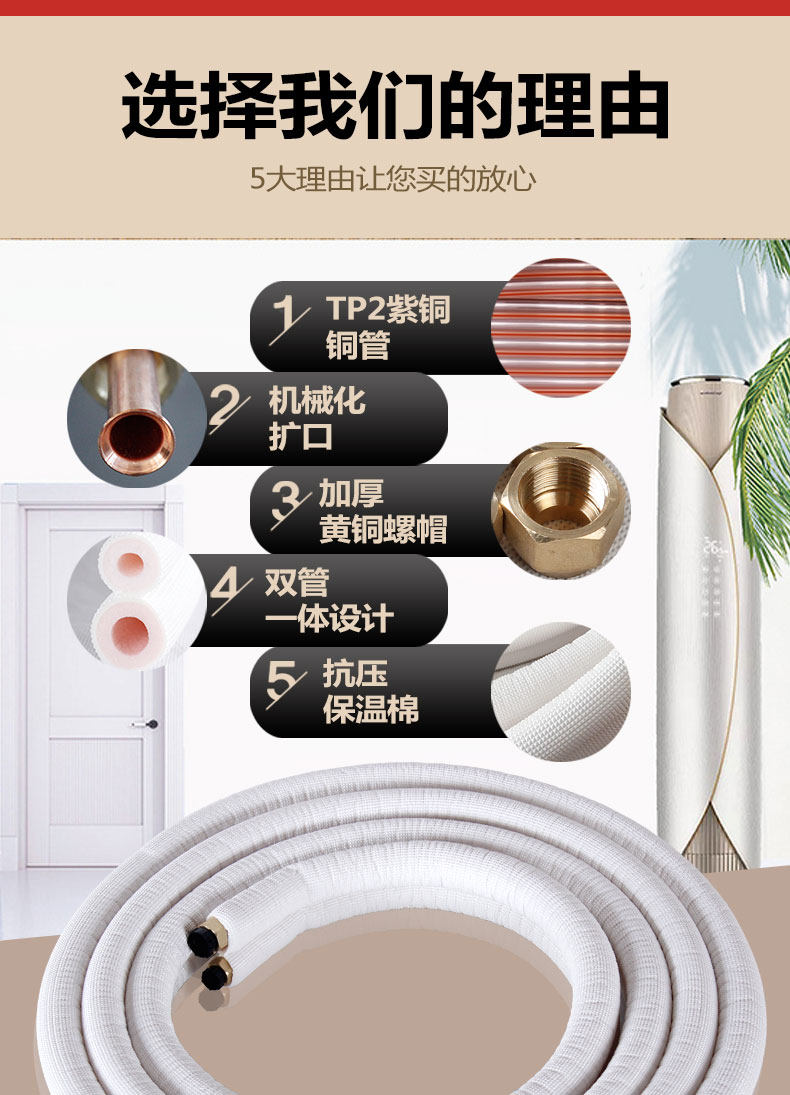 Кондиционирующая подключающая труба готовая без сварная труба чистая медная подключаемая труба подходящая для 1,52P3-мощности, таких как Gree Midea Haier.