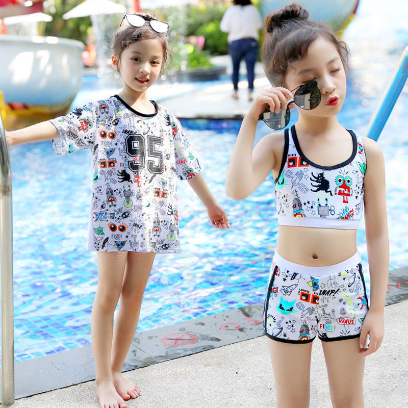 Детский спортивный купальник, раздельный милый комплект, подходит для подростков