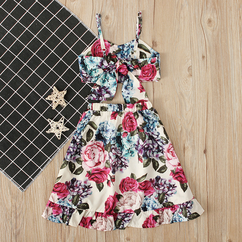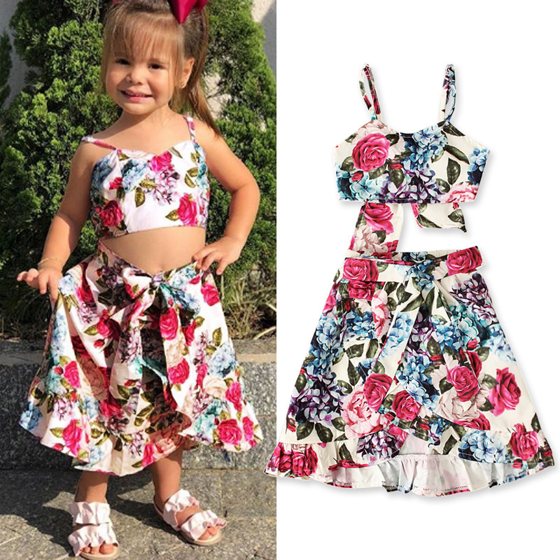 Детская летняя майка, комплект, брендовая юбка, европейский стиль, в цветочек, детская одежда