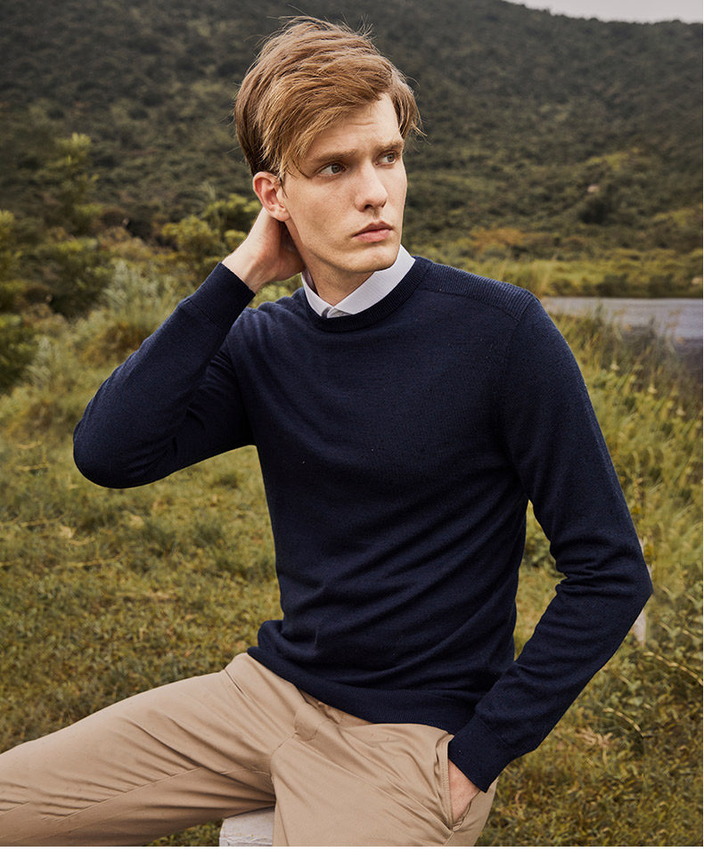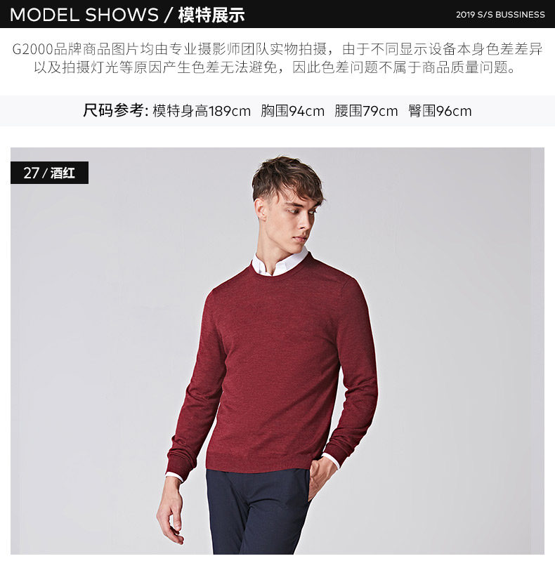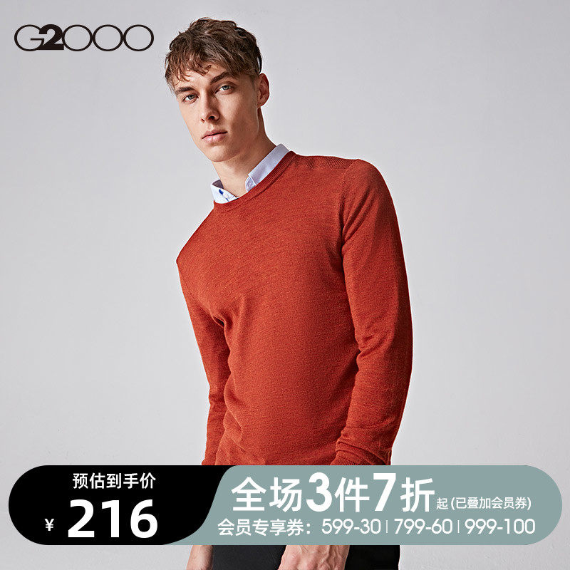G2000 Трикотажный демисезонный свитер для отдыха с круглым воротником, шерстяная базовая утепленный лонгслив, оверсайз