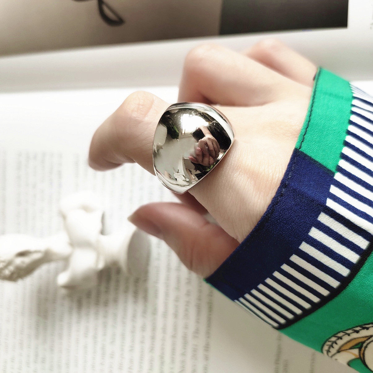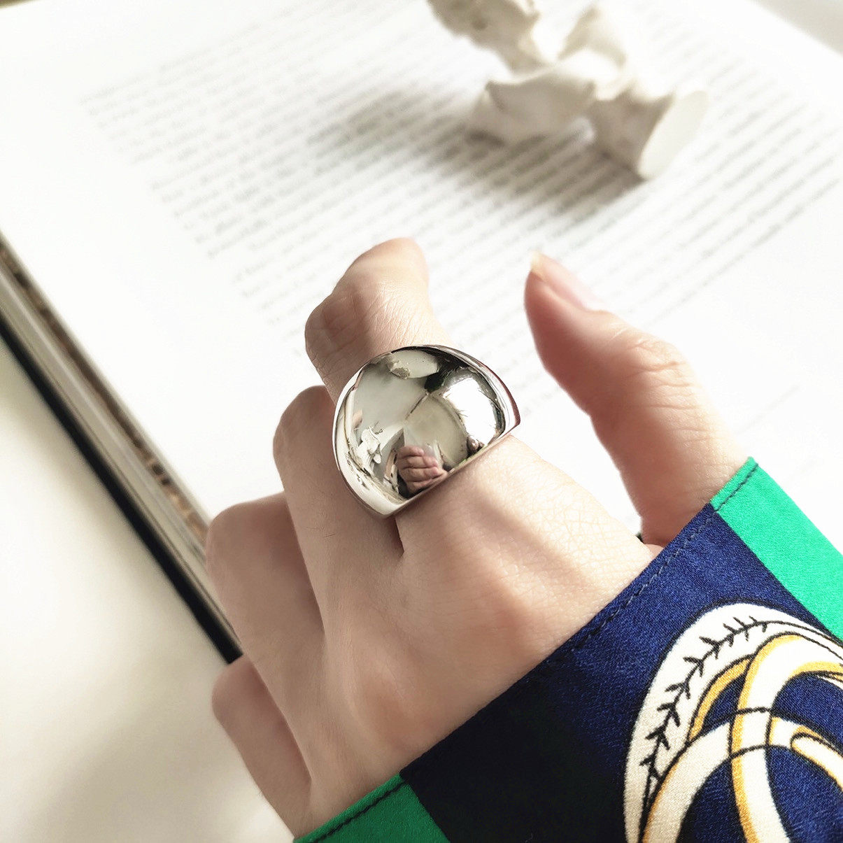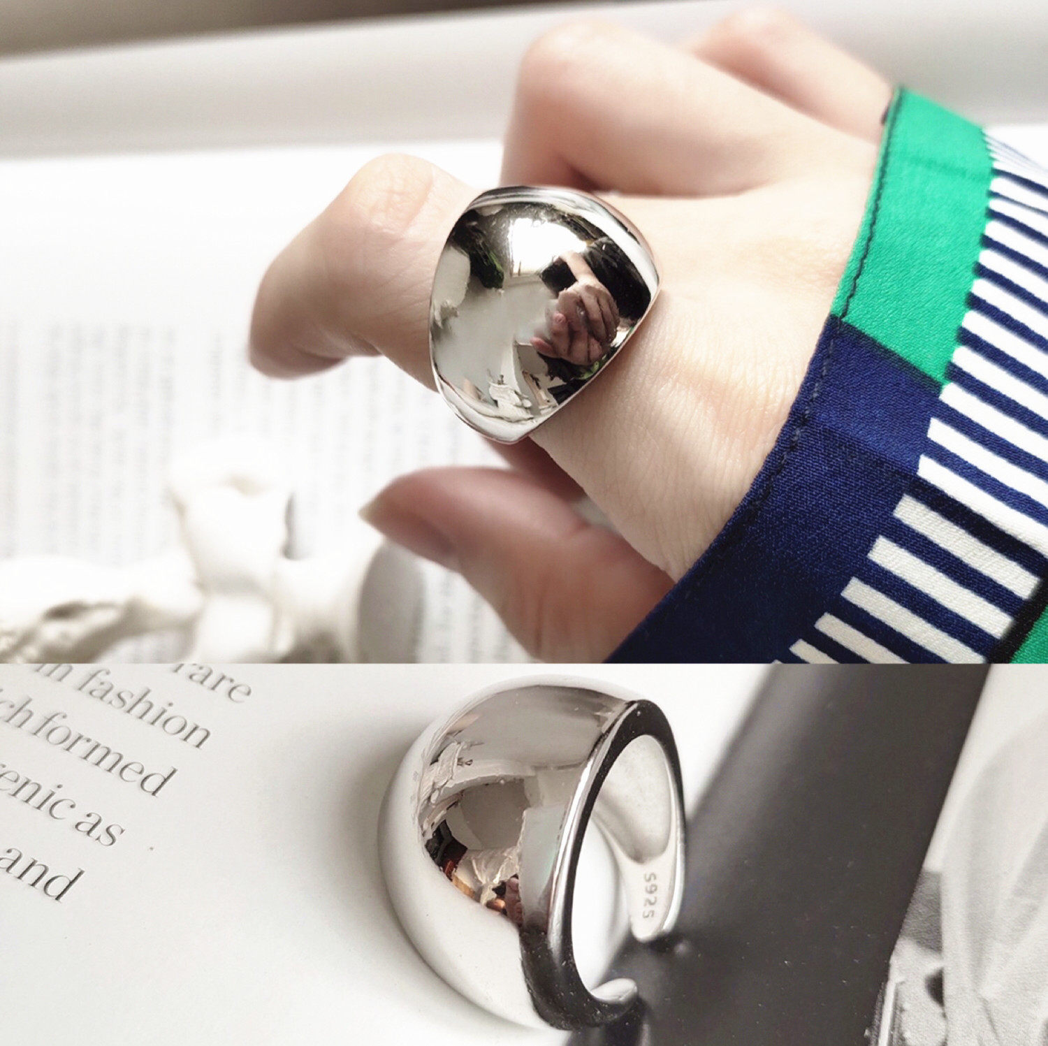 Глянцевое небольшое дизайнерское брендовое кольцо, зеркальный эффект, серебро 925 пробы, популярно в интернете