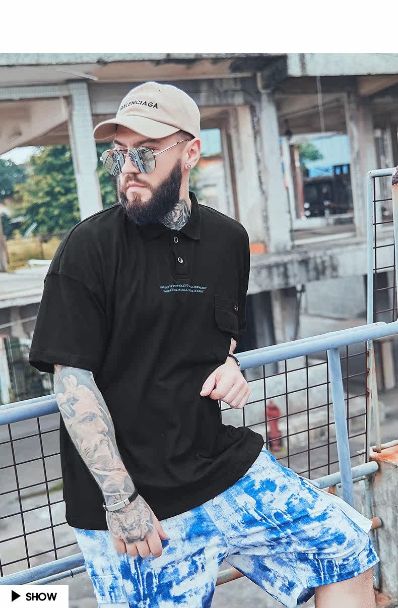 Летняя черная модная футболка polo, большой размер, короткий рукав, оверсайз