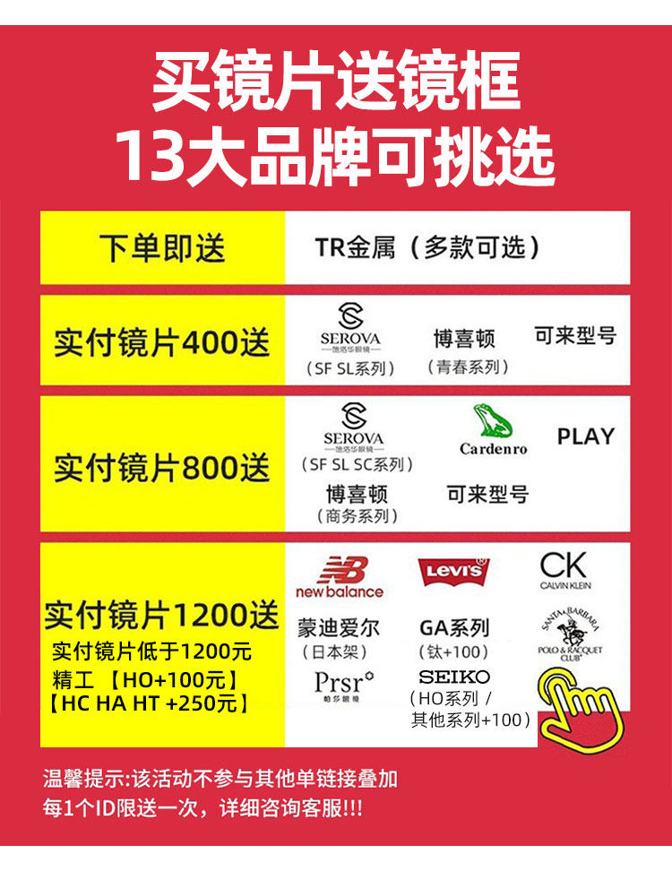 | Показатель преломления линзы: | 1.50 (обычный), 1,56 (тонкий), 1,61 (тонкий), 1,67 (ультра -тщательный) |