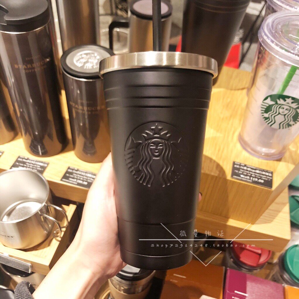 Starbucks, классический черный матовый стакан из нержавеющей стали со стаканом, простой и элегантный дизайн