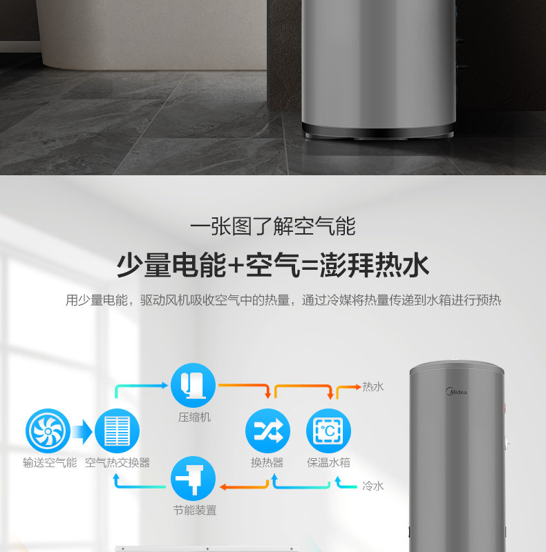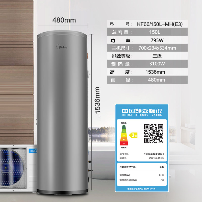 Midea Air Energy Water Watereaver KF66/150L-MH (E3) 150 литров теплового насоса источника воздуха, используемого домом, небольшой объем