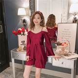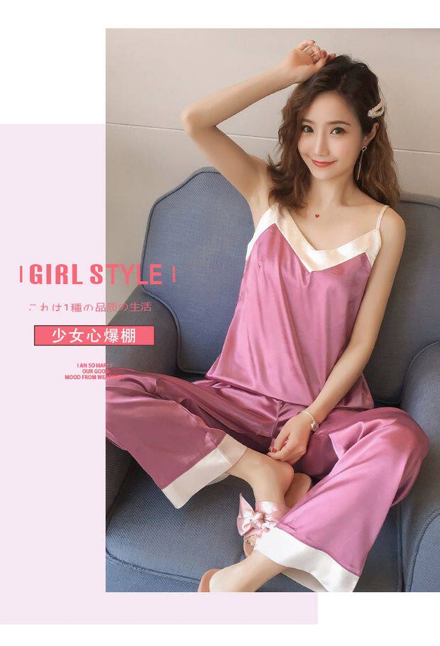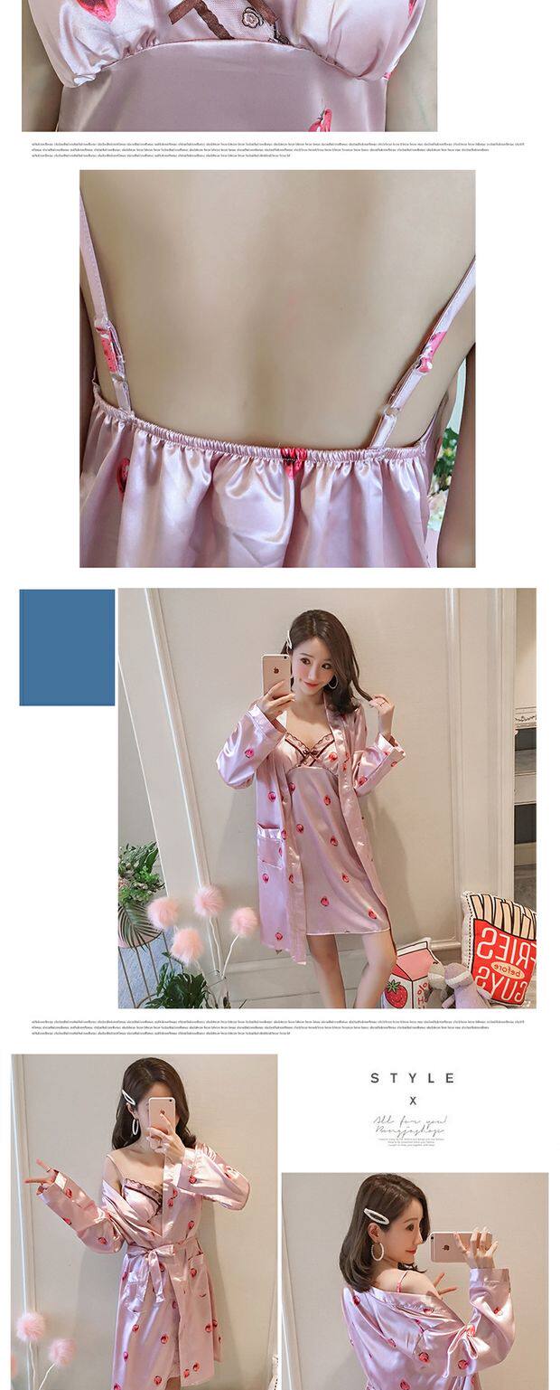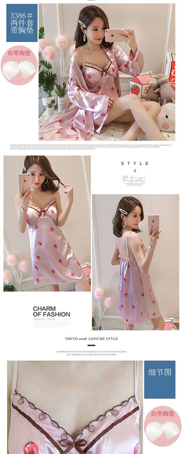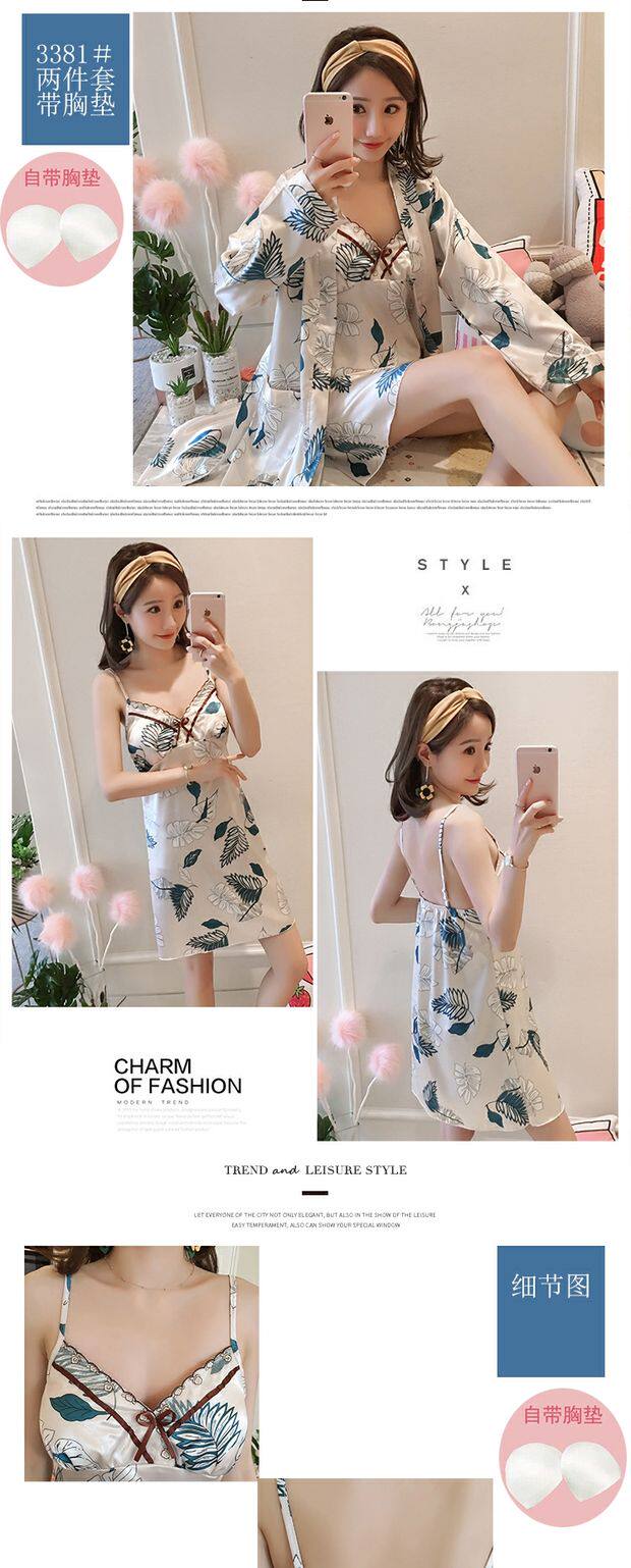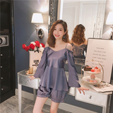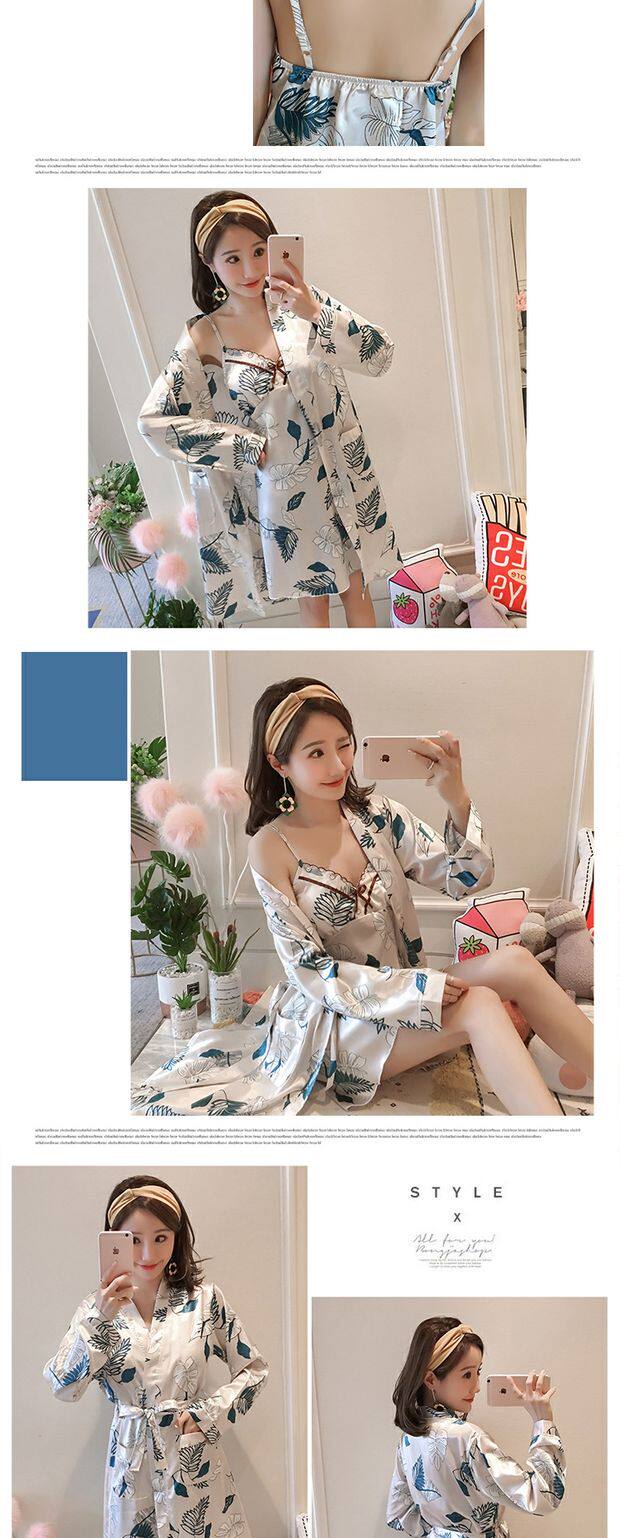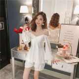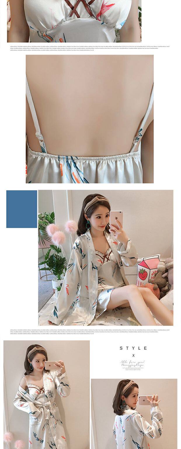 Осенняя летняя тонкая шелковая пижама, шелковый сексуальный комплект, домашняя одежда, эффект подтяжки, 3 предмета, 4 предмета