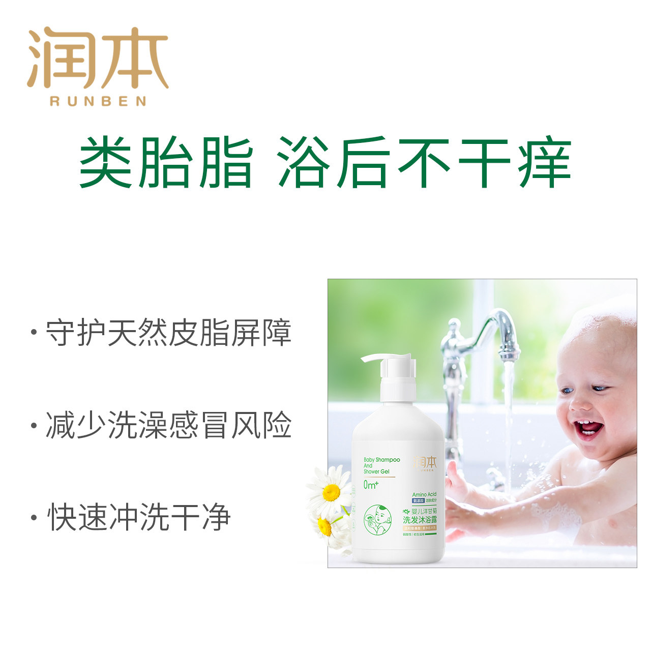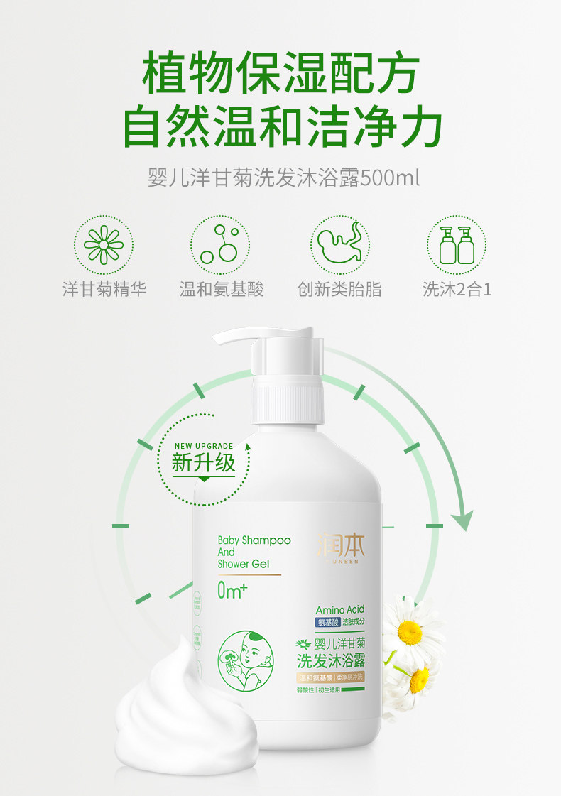 润本 Детский гель для душа, шампунь для младенца для новорожденных для раннего возраста, 2 в 1