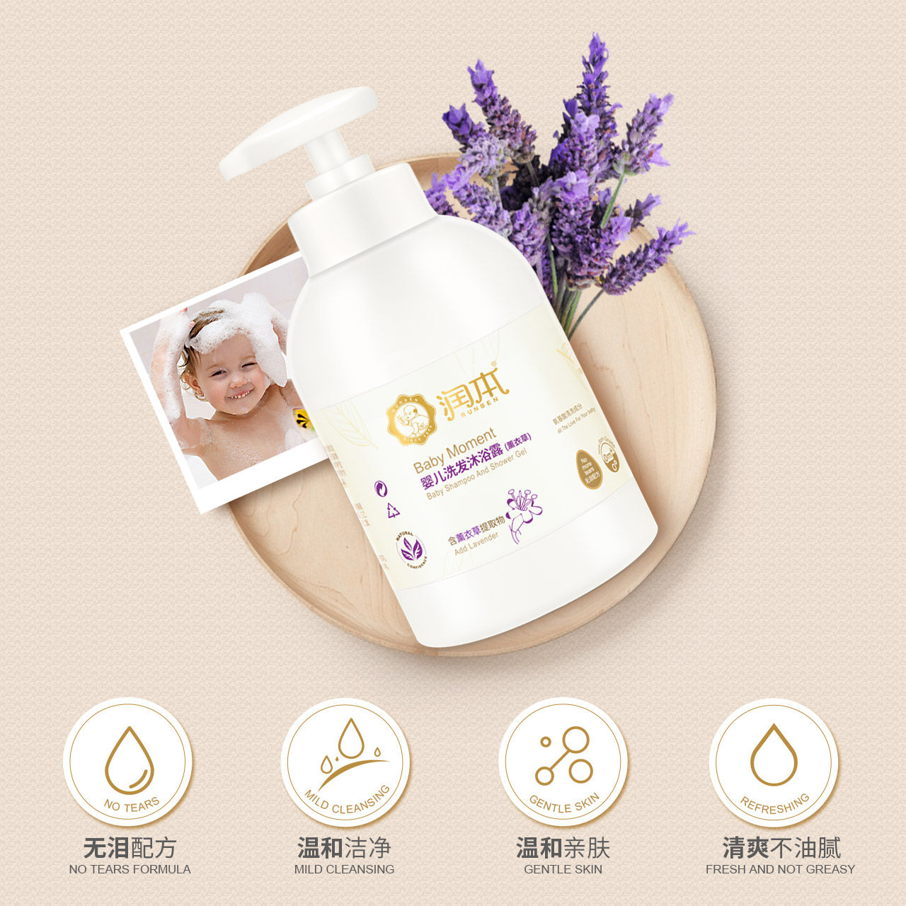 润本 Средство детской гигиены, шампунь, детский гель для душа, 2 в 1, 500 мл