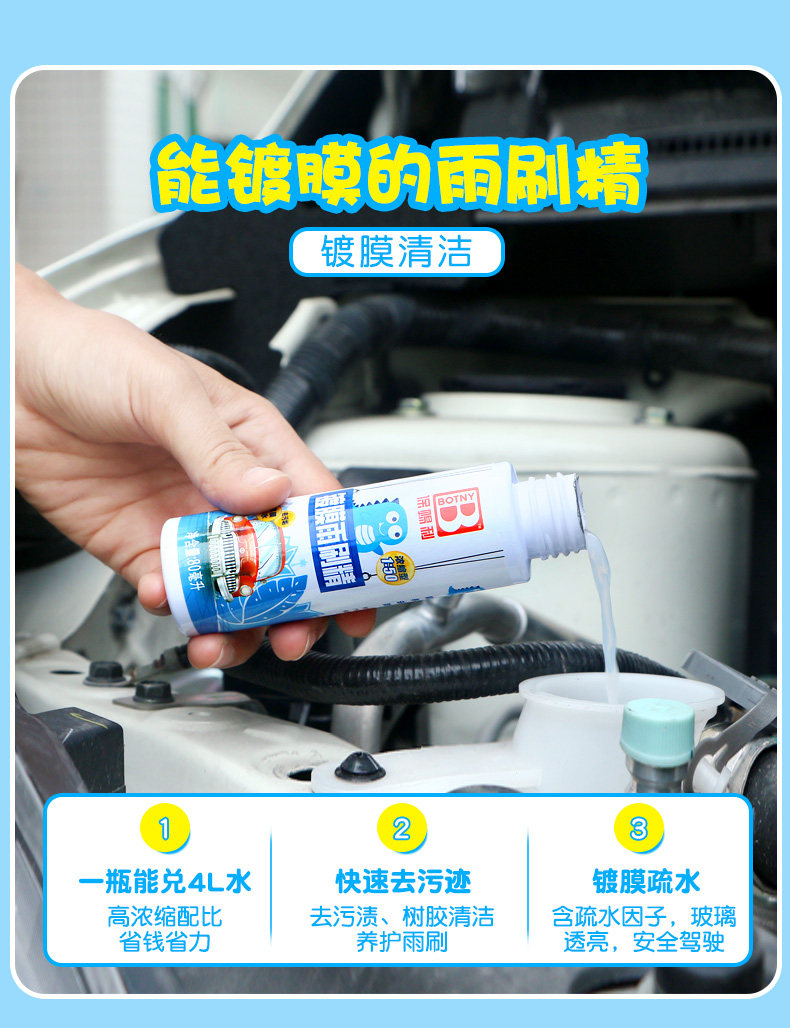 Цвет: [1] 3 бутылки, покрытые протяженностью дождевой водой, обеззараживаемая стеклоочиститель, поддержанный водой