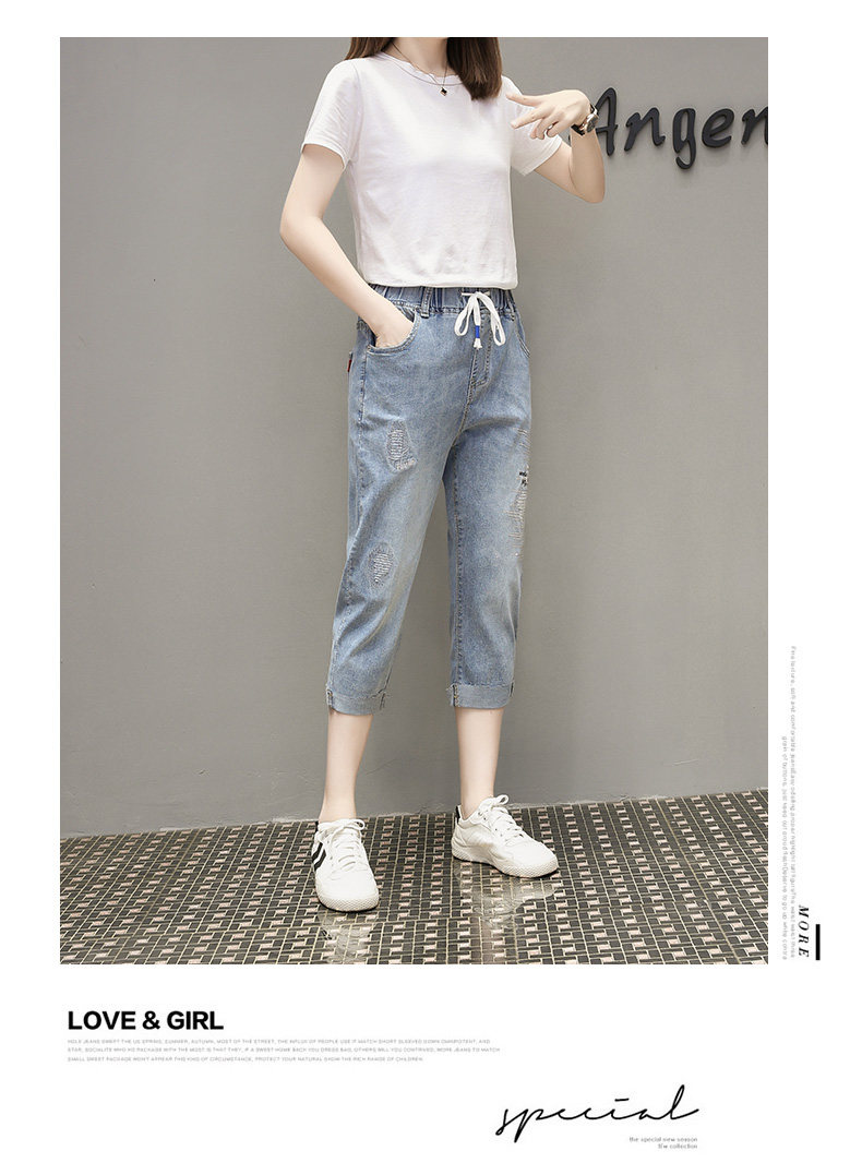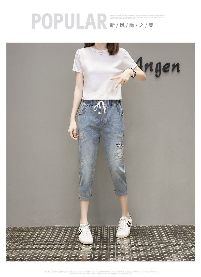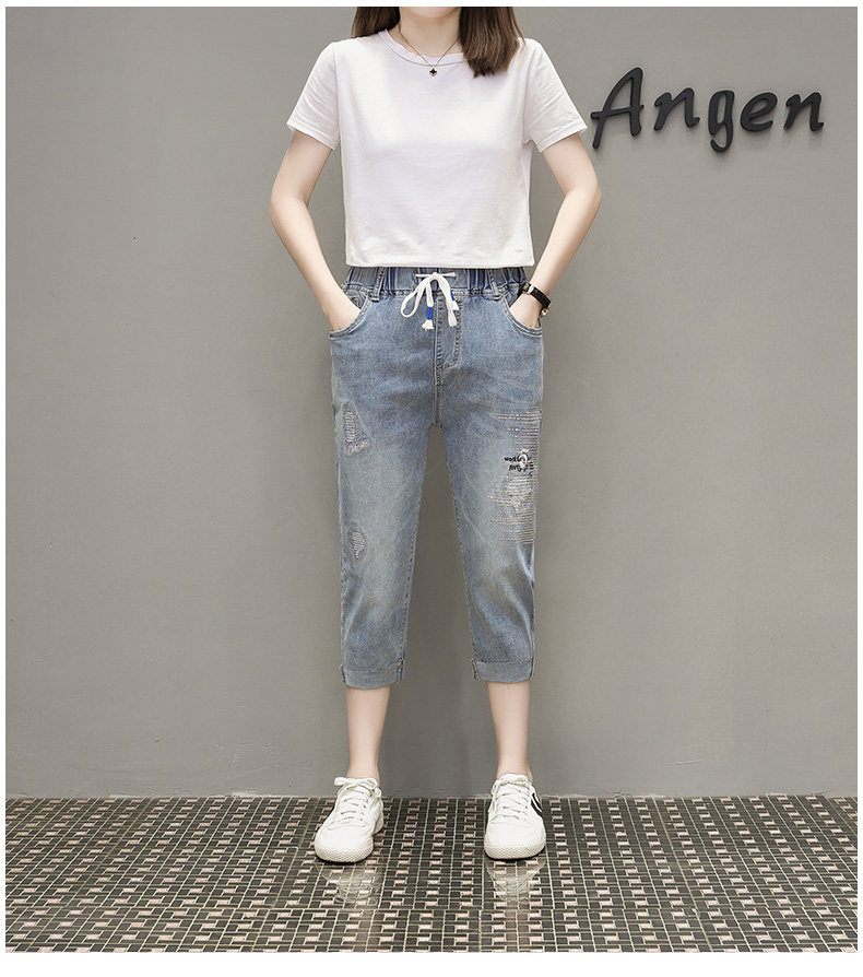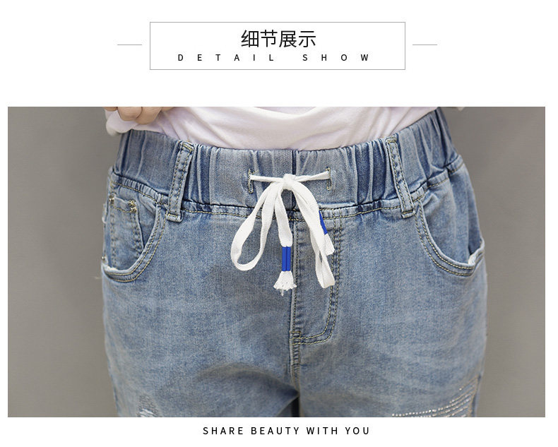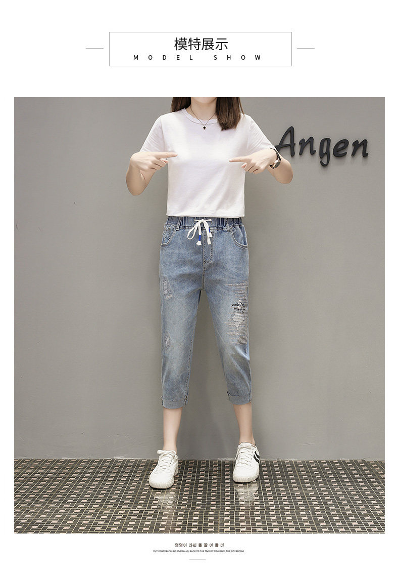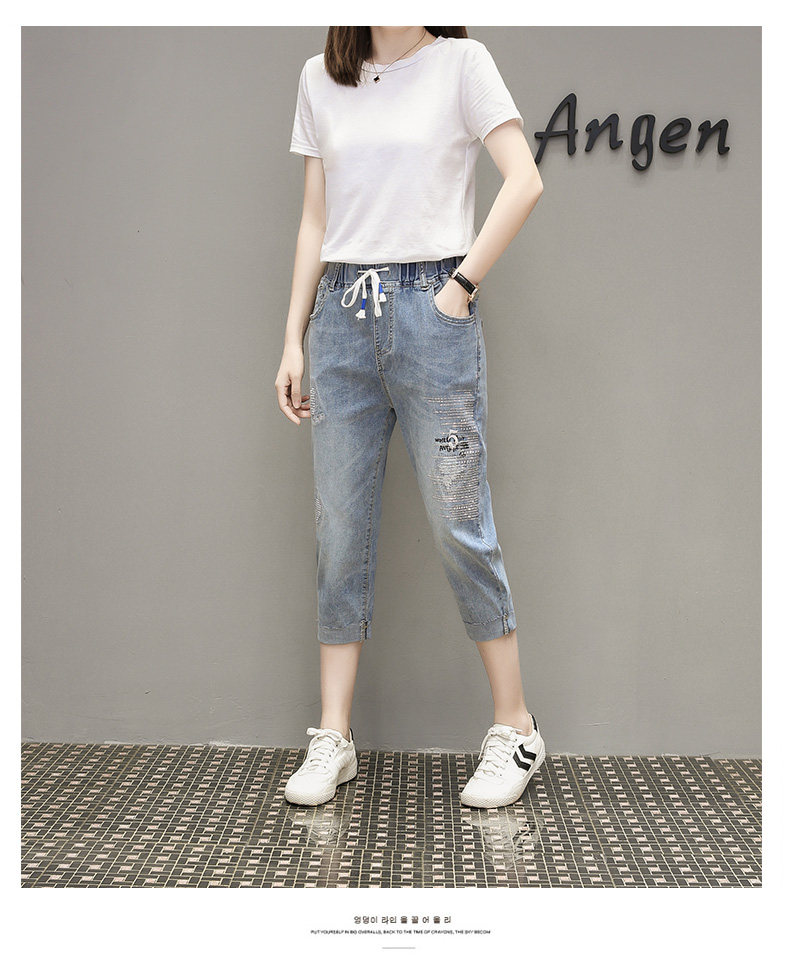 Летняя эластичная летняя одежда, джинсовые штаны, большой размер, подходит для полных девушек, высокая талия, свободный крой