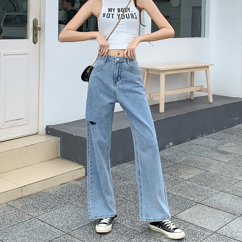 Джинсы, штаны, большой размер, подходит для полных девушек, высокая талия, свободный прямой крой